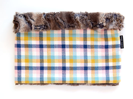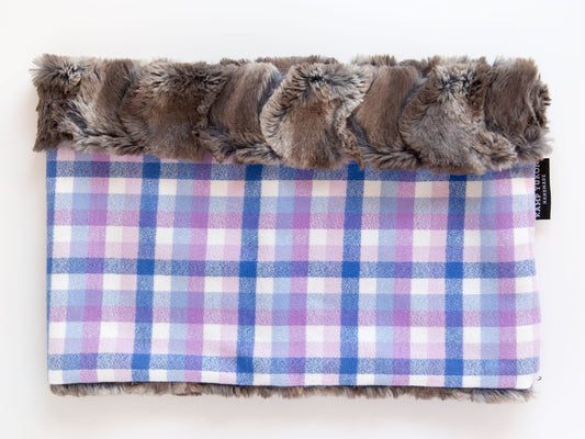 Super soft cowl scarves are lined with minky and have a flannel exterior. The perfect reversible neck warmer. Machine washable!