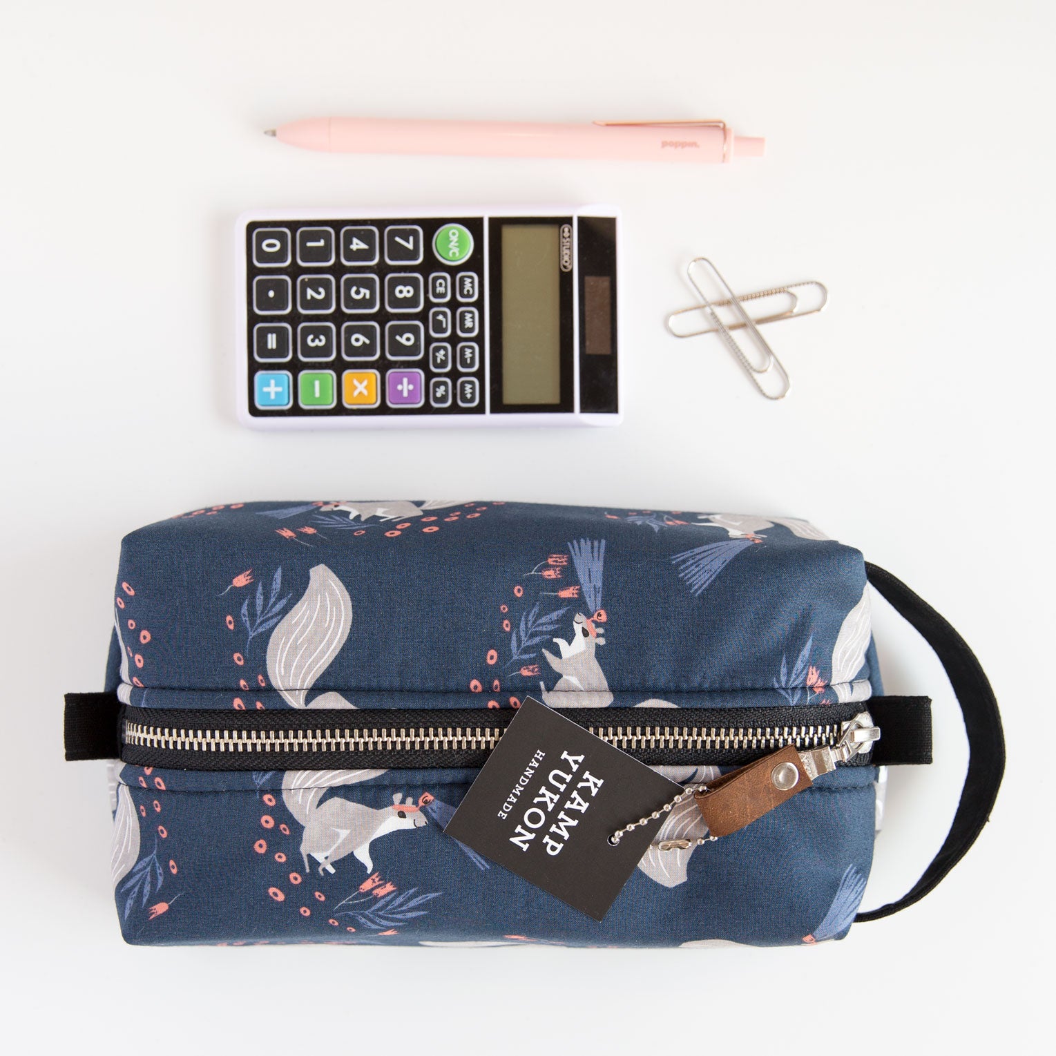 With just the right amount of batting and interfacing, this bag is soft and sturdy. Featuring a canvas handle, metal YKK zipper, leather zipper pull and two tabs for easy zipping and unzipping. Made from high-quality materials and built to last.