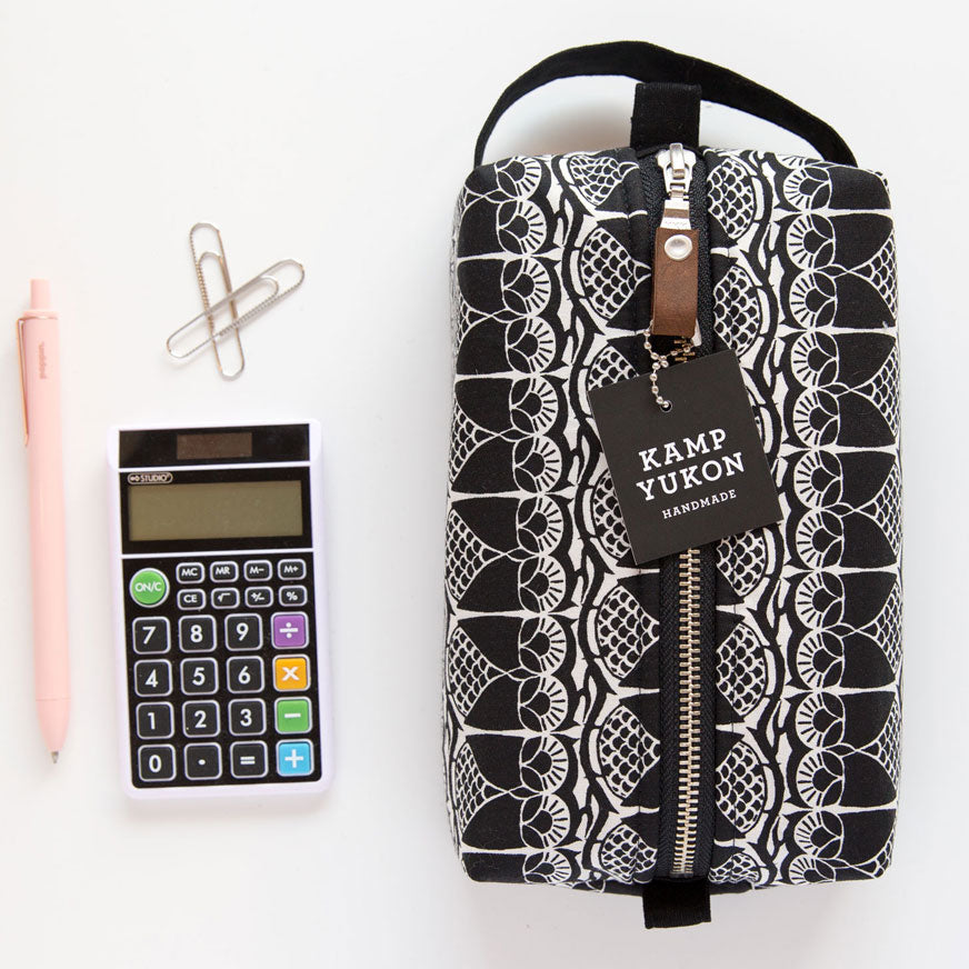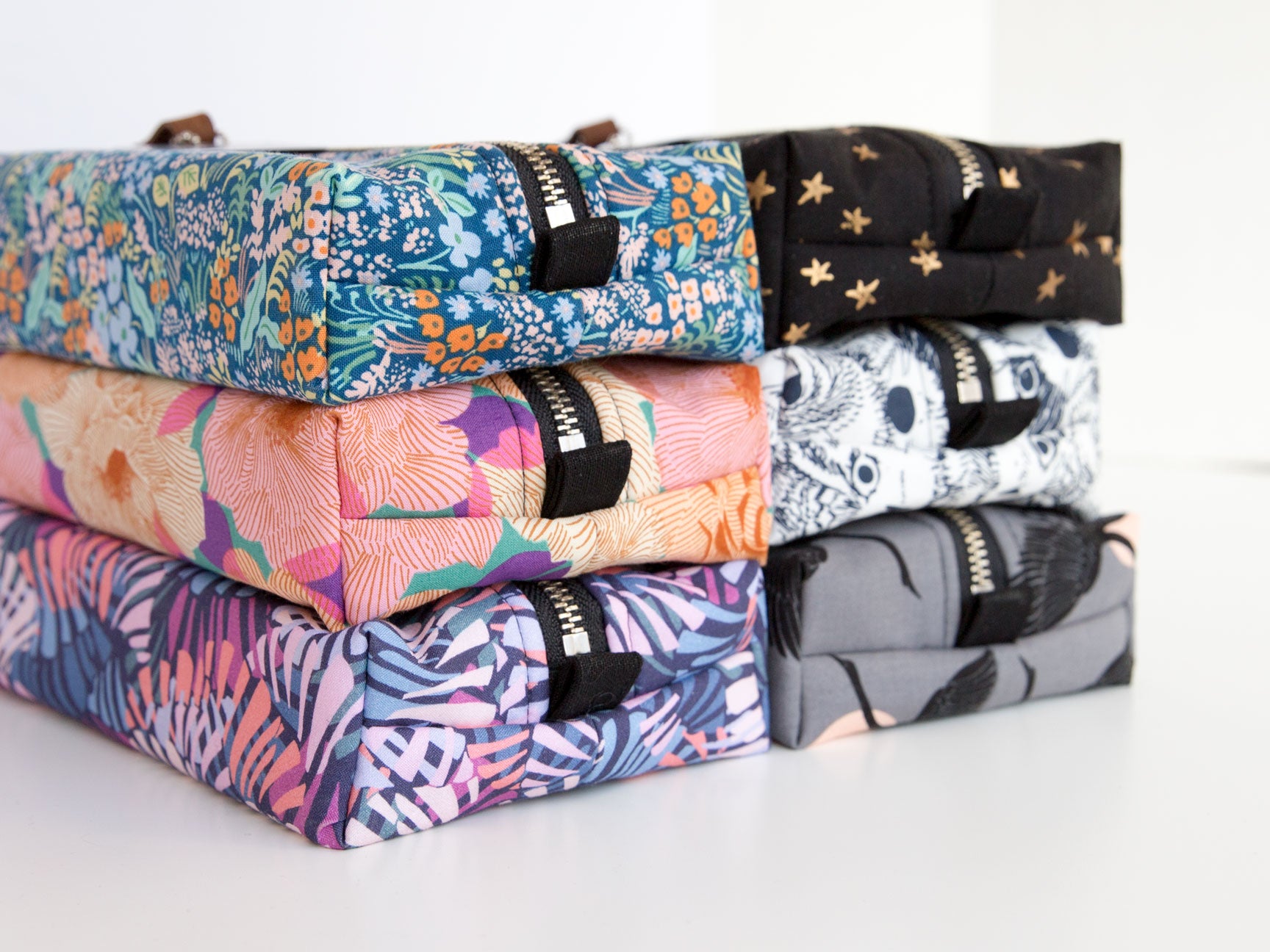 With just the right amount of batting and interfacing, this bag is soft and sturdy. Featuring a canvas handle, metal YKK zipper, leather zipper pull and two tabs for easy zipping and unzipping. Made from high-quality materials and built to last.