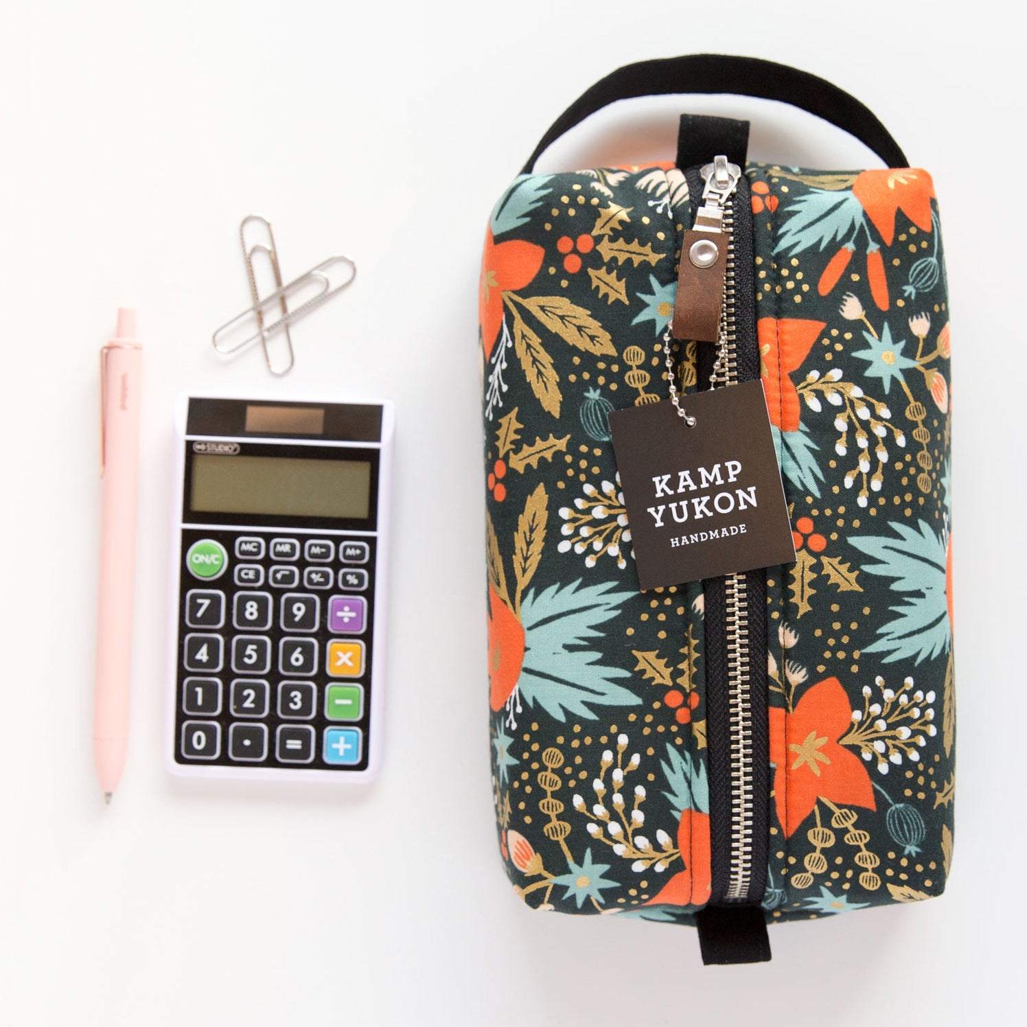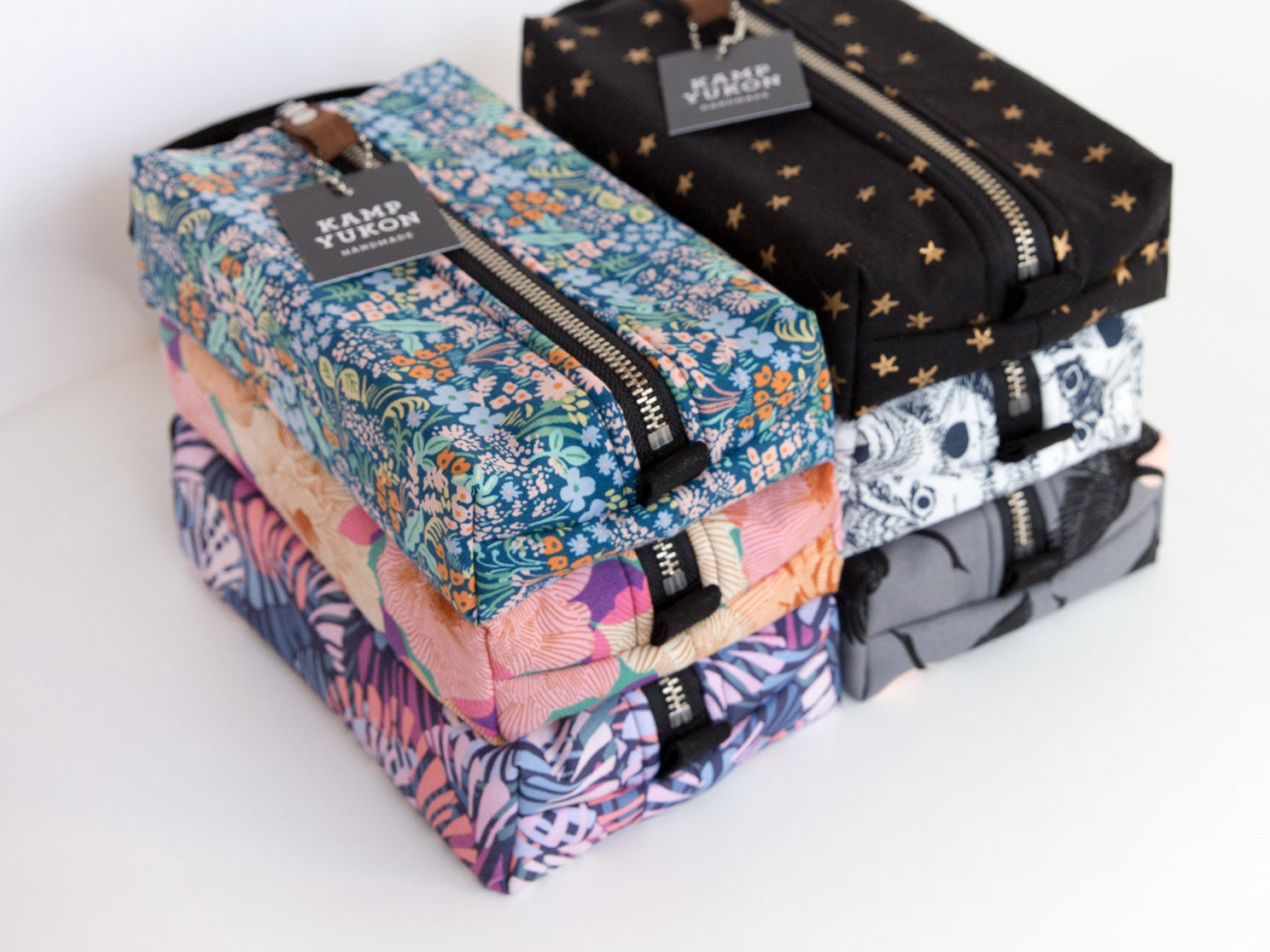 With just the right amount of batting and interfacing, this bag is soft and sturdy. Featuring a canvas handle, metal YKK zipper, leather zipper pull and two tabs for easy zipping and unzipping. Made from high-quality materials and built to last.