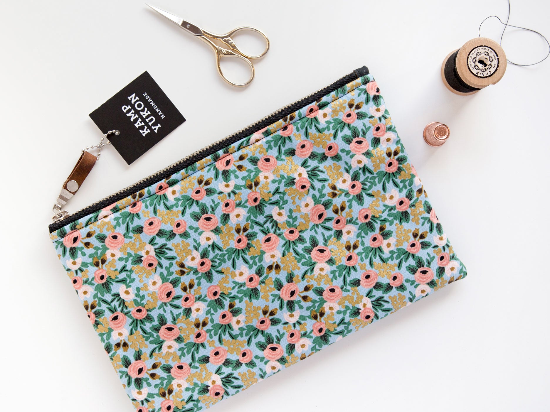 This pouch can hold notebooks and pens, or even be used as a clutch when you're out for the night. Need to carry charging cords, stationary, sewing notions, makeup, or your pencils? The Flat Pouch has got you covered!