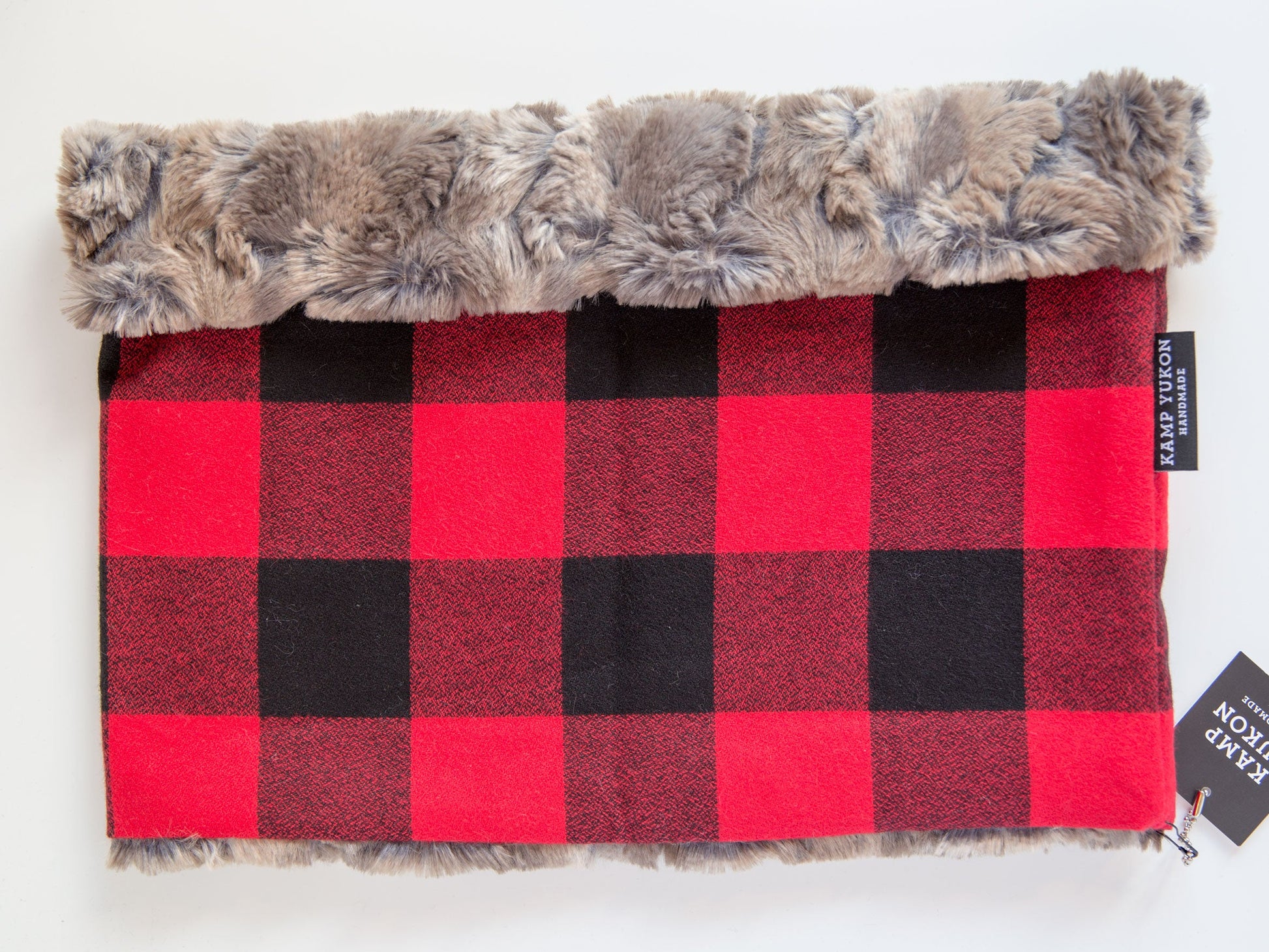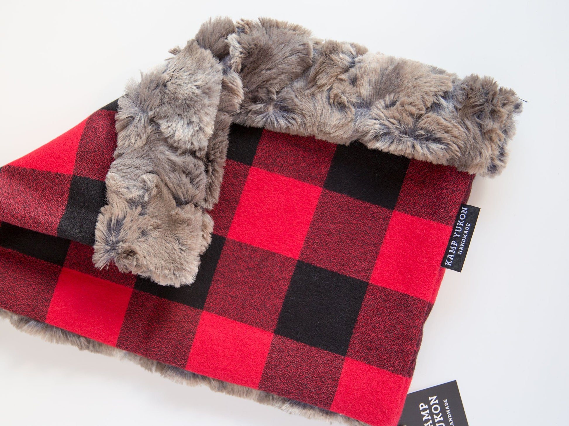 These neck warmers are the perfect accessory to keep you cozy this fall and winter (and maybe year-round in the Yukon). Reversible with a fun flannel on one side and a super soft minky fur on the other.