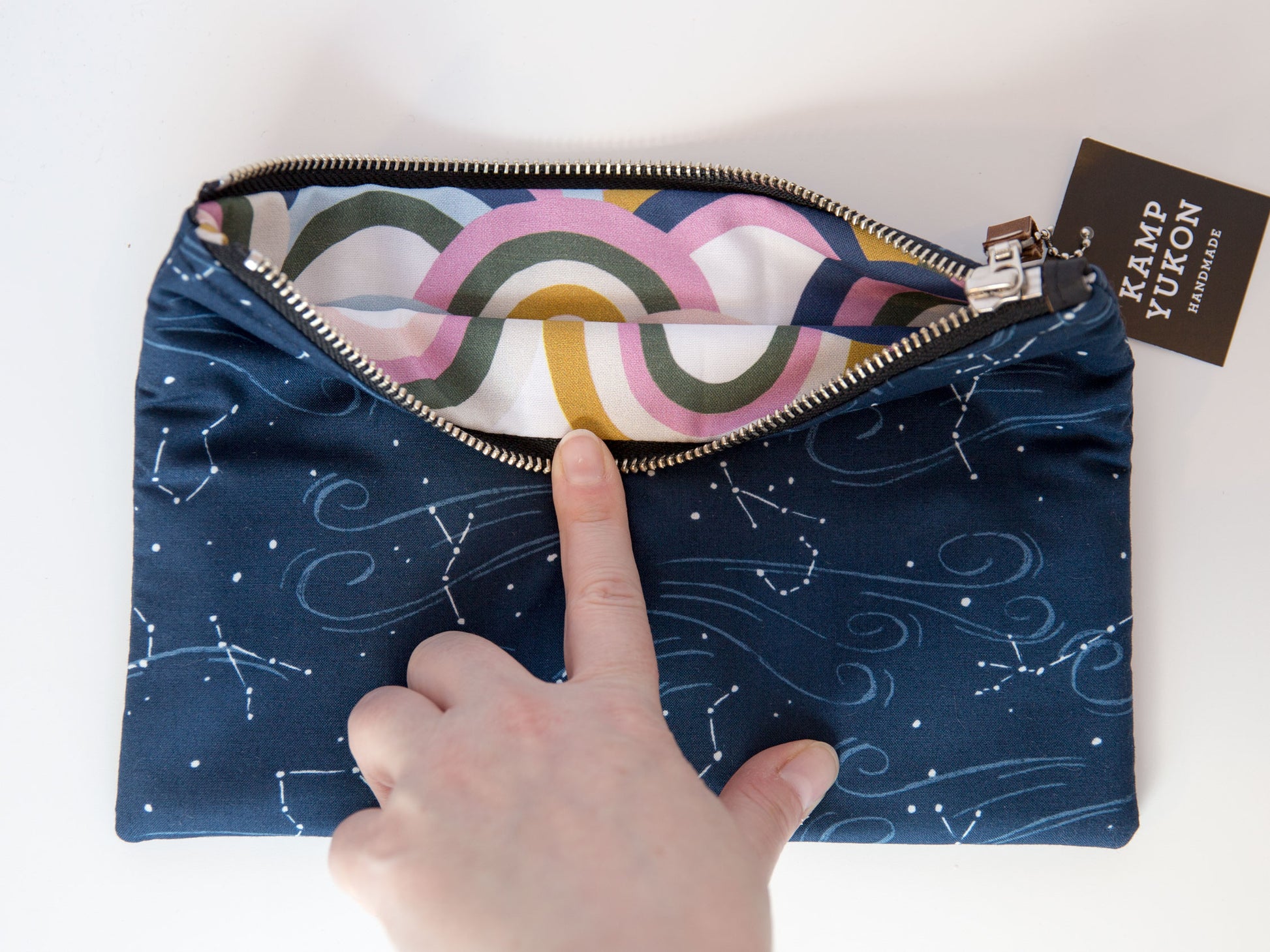 This pouch can hold notebooks and pens, or even be used as a clutch when you're out for the night. Need to carry charging cords, stationary, sewing notions, makeup, or your pencils? The Flat Pouch has got you covered!