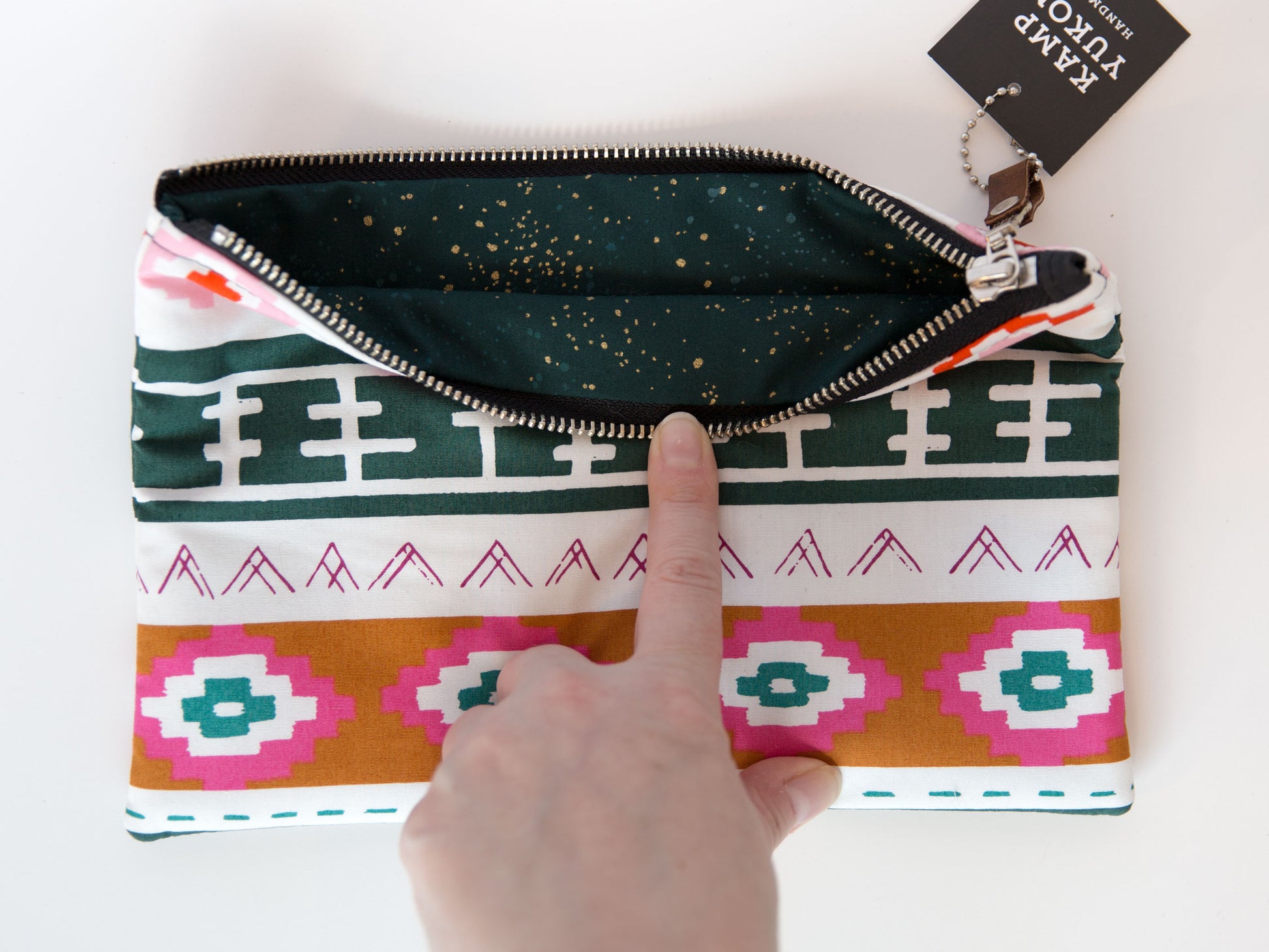This pouch can hold notebooks and pens, or even be used as a clutch when you're out for the night. Need to carry charging cords, stationary, sewing notions, makeup, or your pencils? The Flat Pouch has got you covered!