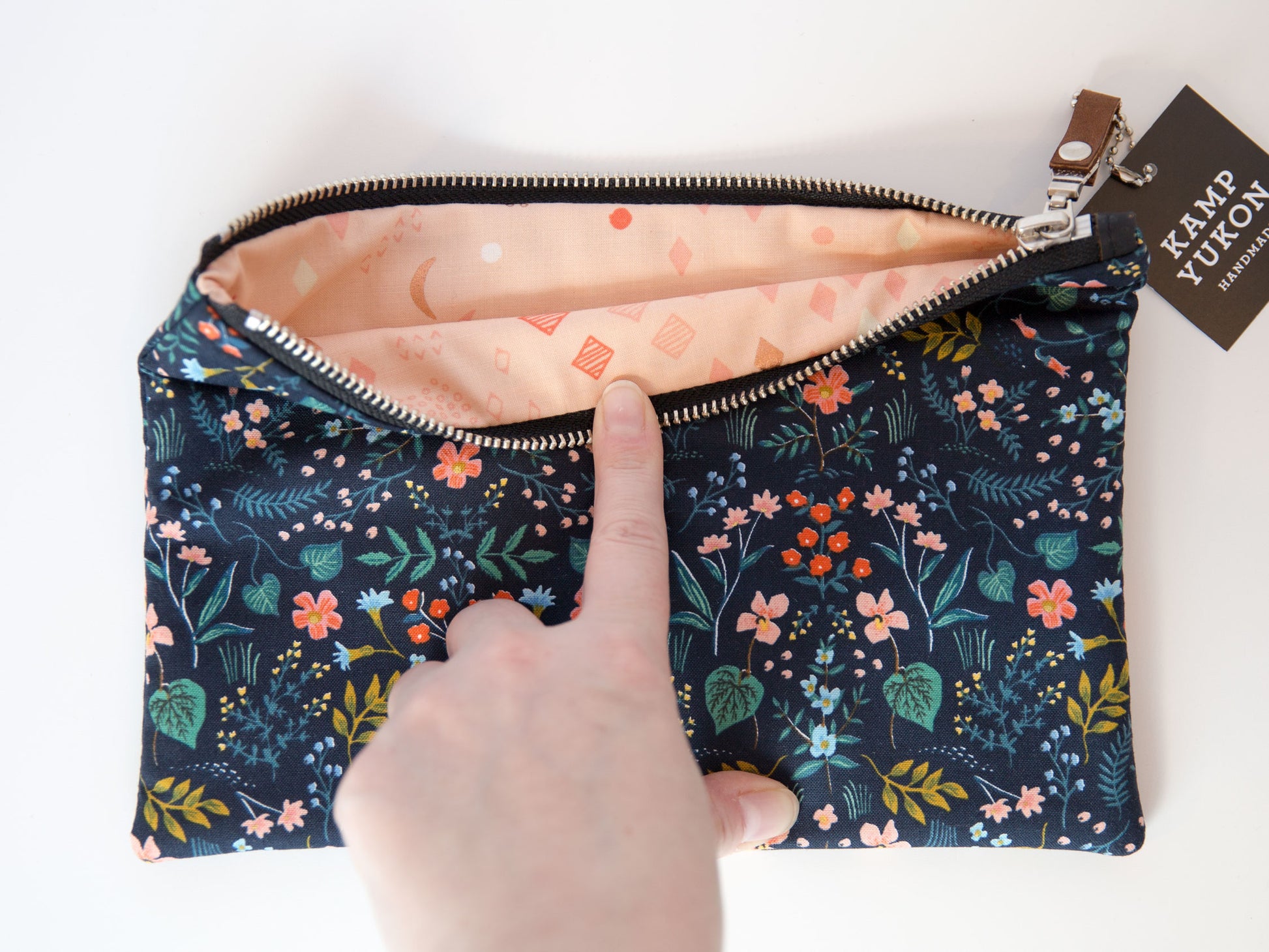 This pouch can hold notebooks and pens, or even be used as a clutch when you're out for the night. Need to carry charging cords, stationary, sewing notions, makeup, or your pencils? The Flat Pouch has got you covered!