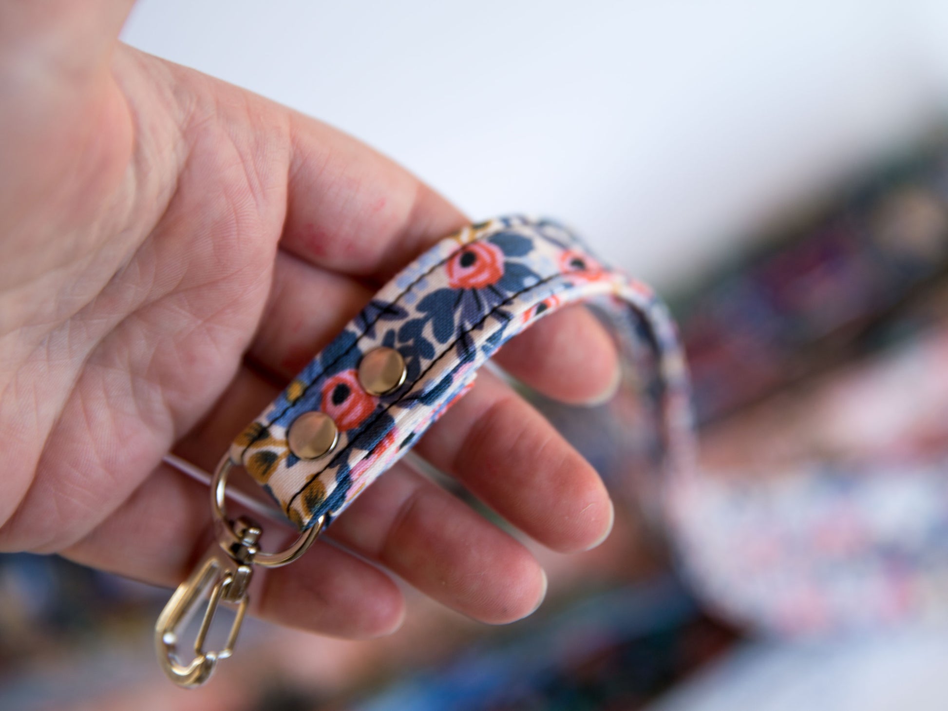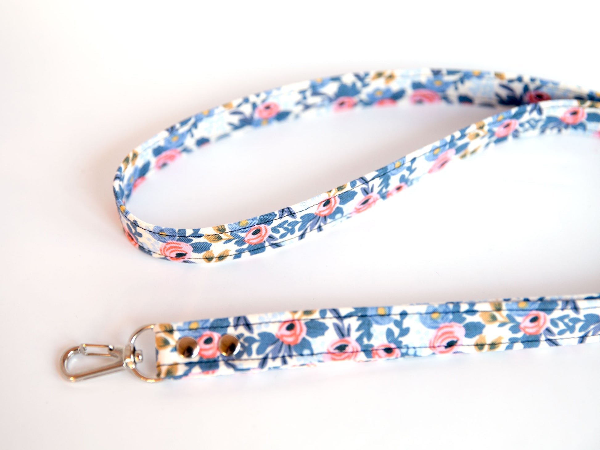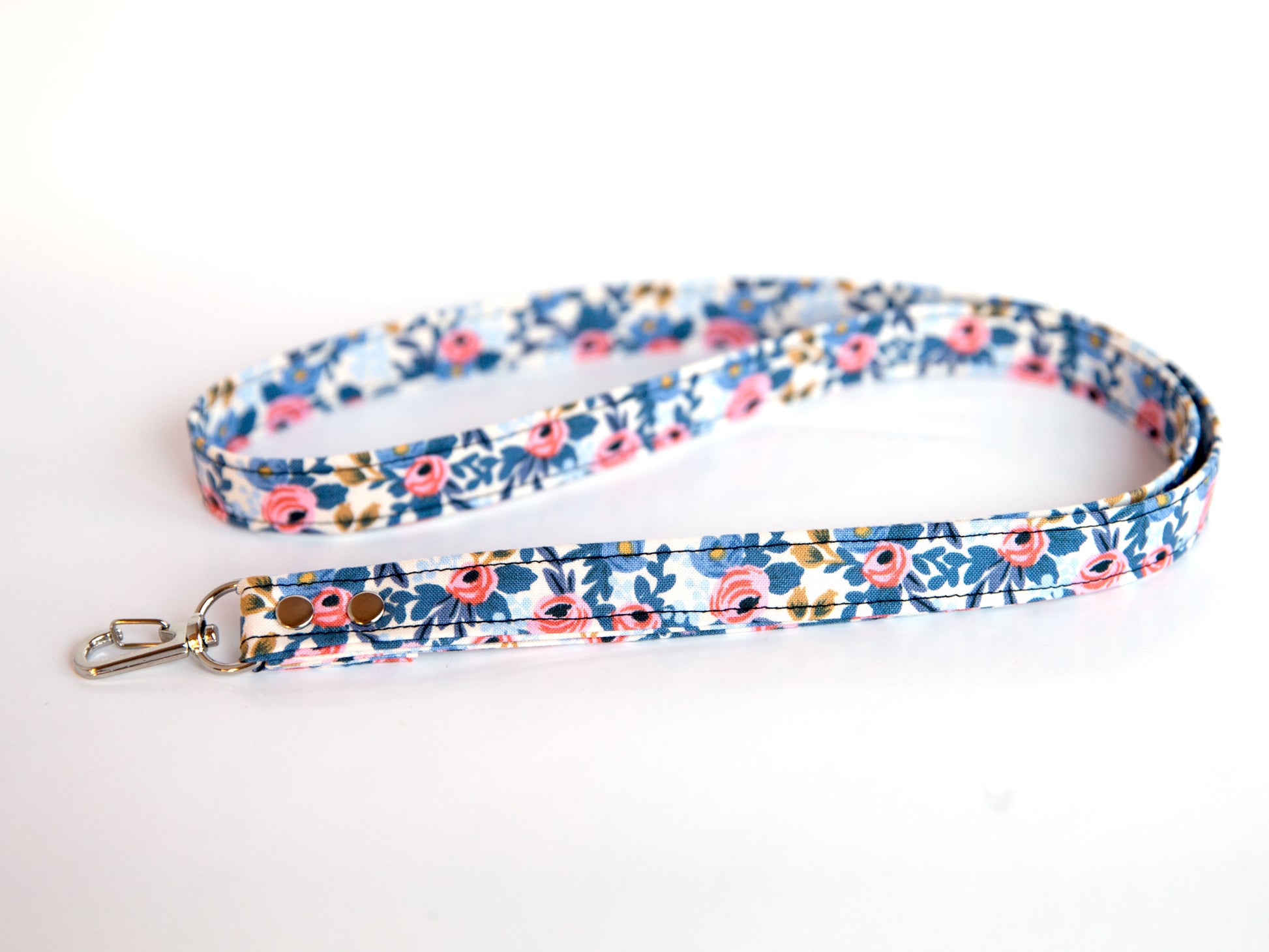 Designed with a half twist so it curves comfortably on your neck and lays flat on your chest. The swivel clip is secured with two rivets adding security and a little shine. Lightly interfaced to provide just the right amount of strength without feeling too stiff or bulky.