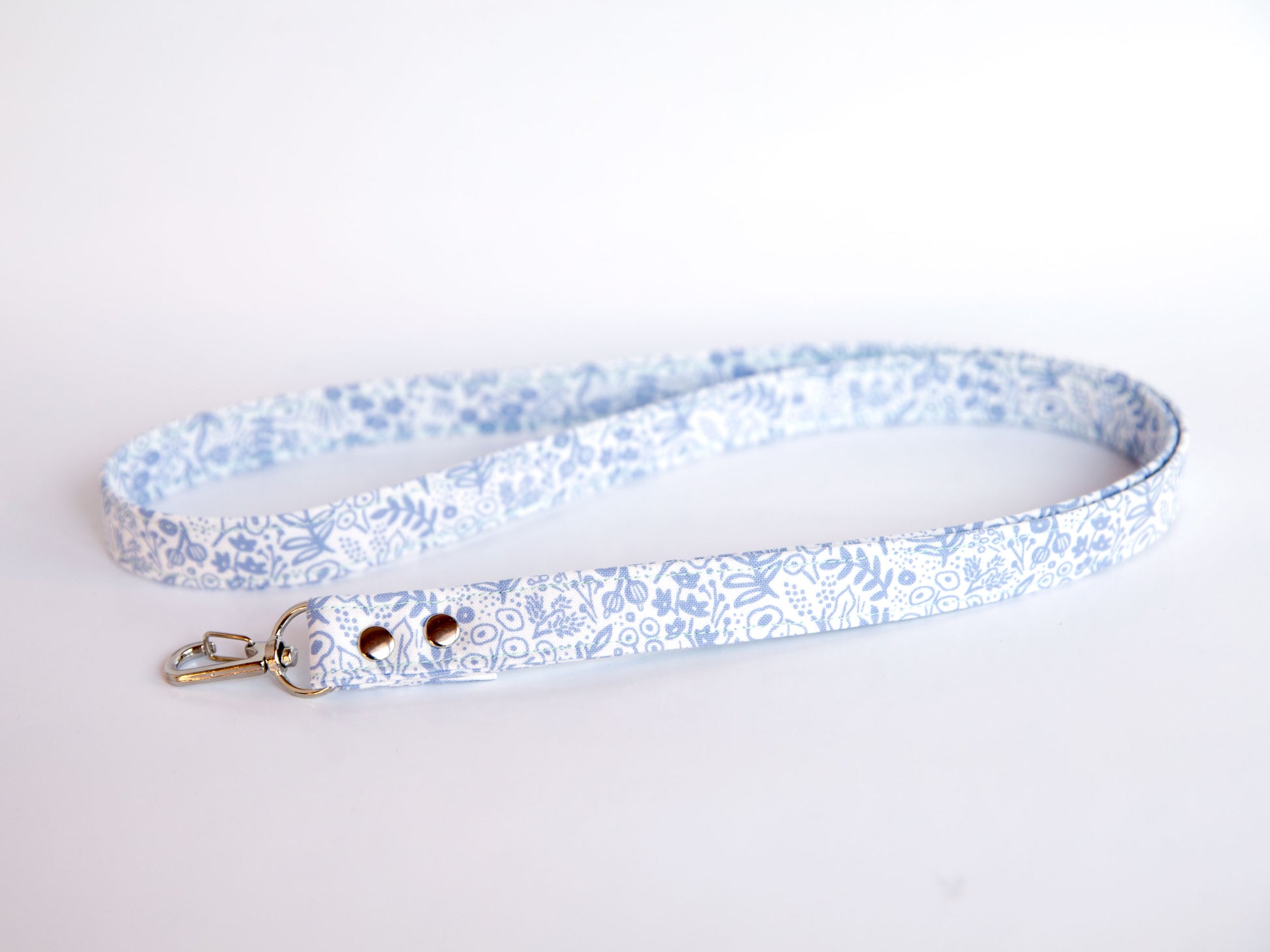 Designed with a half twist so it curves comfortably on your neck and lays flat on your chest. The swivel clip is secured with two rivets adding security and a little shine. Lightly interfaced to provide just the right amount of strength without feeling too stiff or bulky.