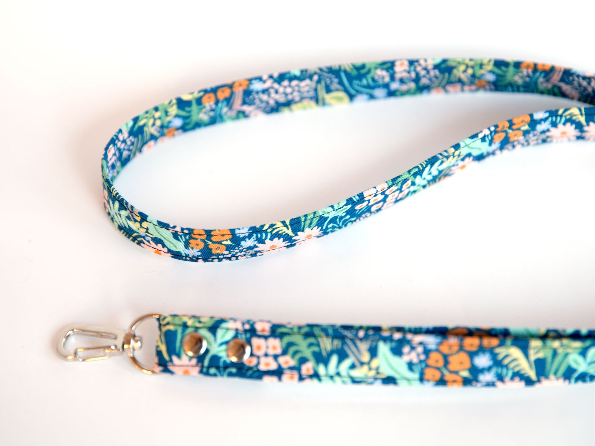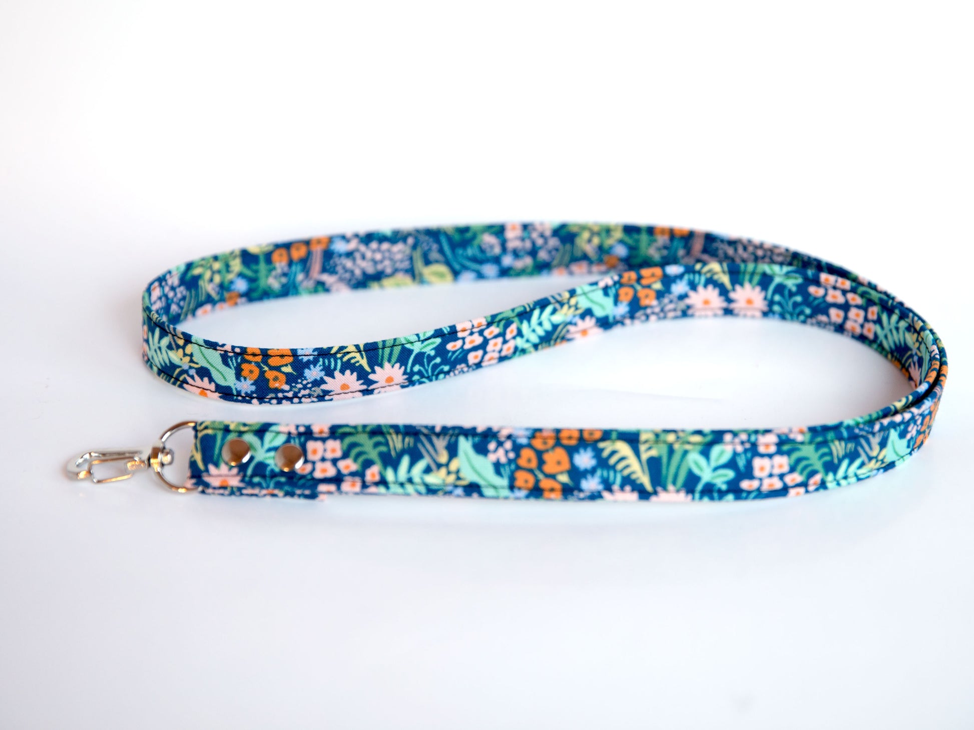 Designed with a half twist so it curves comfortably on your neck and lays flat on your chest. The swivel clip is secured with two rivets adding security and a little shine. Lightly interfaced to provide just the right amount of strength without feeling too stiff or bulky.