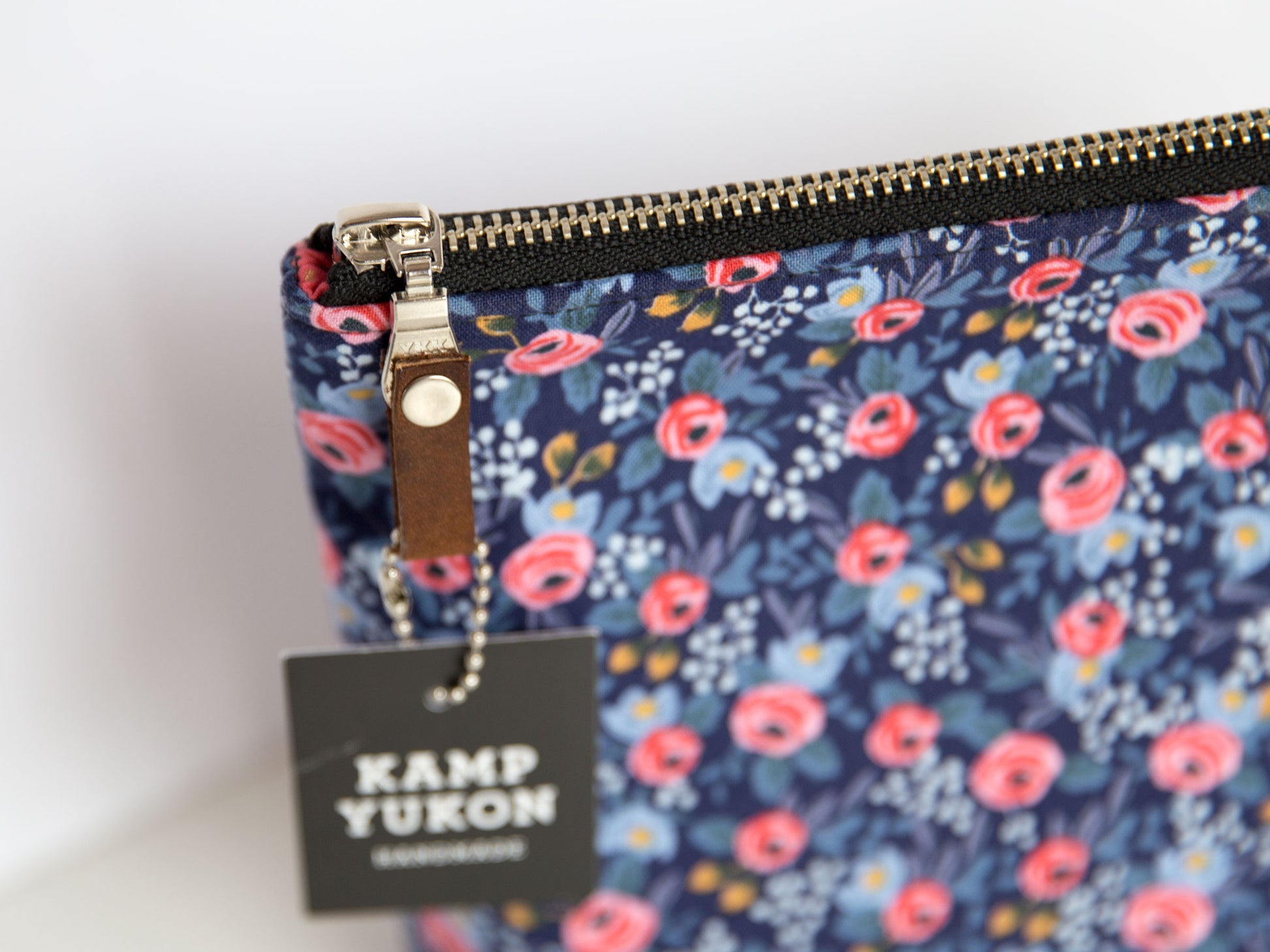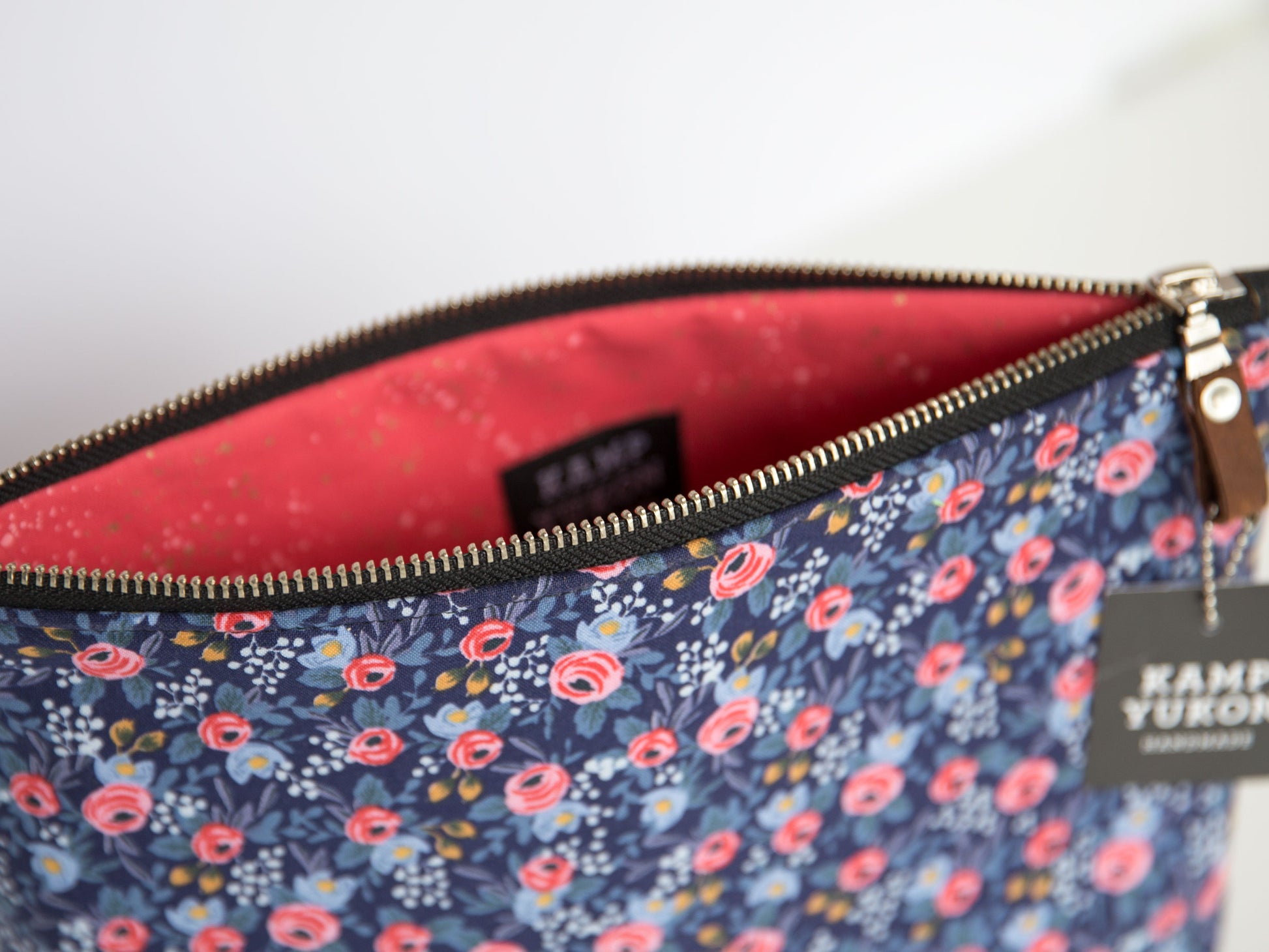With just the right amount of batting and interfacing, this bag is soft and sturdy. Featuring a metal YKK zipper, leather zipper pull, and designer cotton fabric. Made from high-quality materials and built to last.