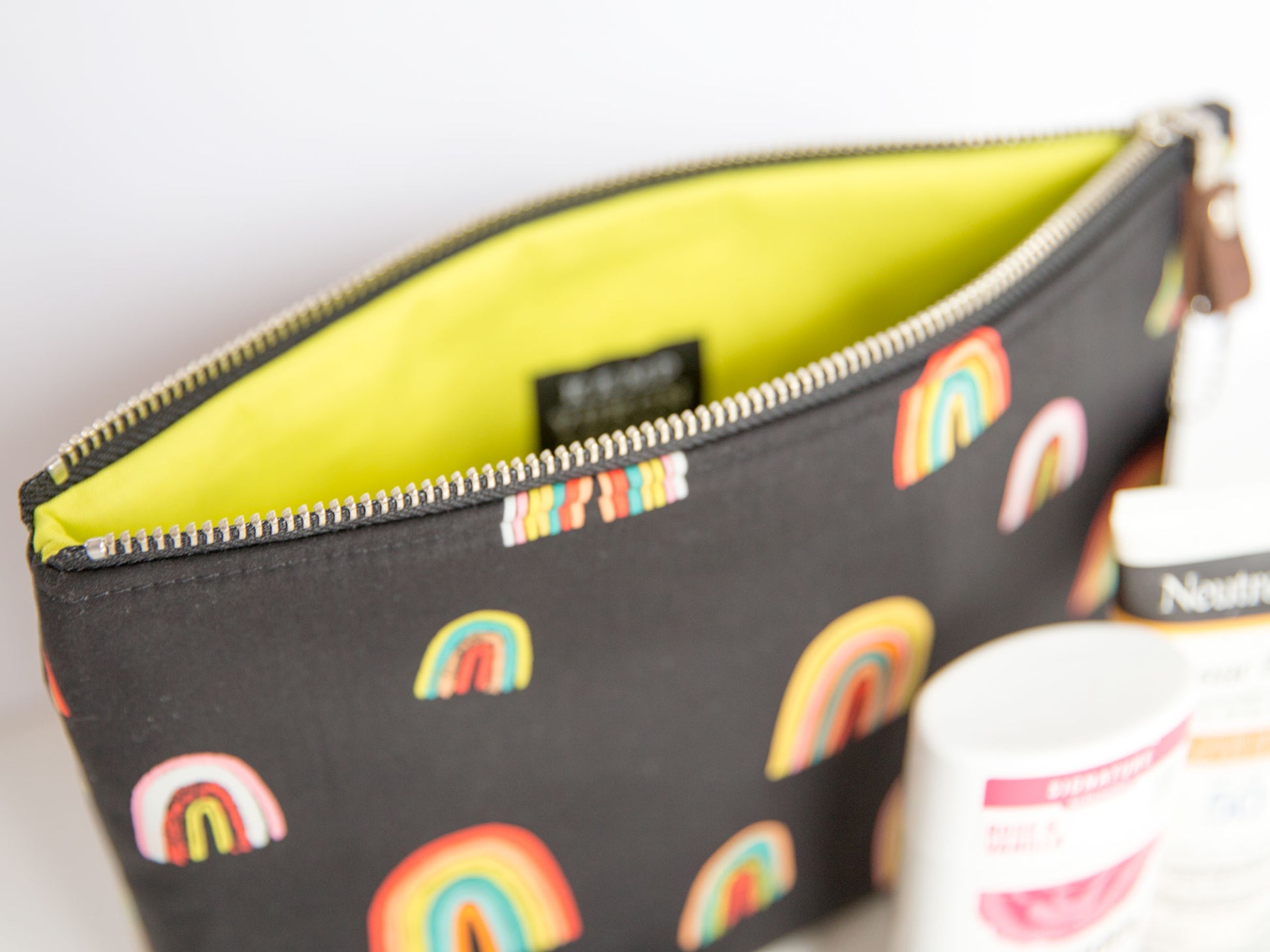 This larger pouch is the perfect for those who need a little extra room for their daily essentials. Store makeup, cosmetics, personal care items, travel items, pencils, notebooks, craft supplies, or even small knitting projects. It’s also a great purse or diaper bag organizer.