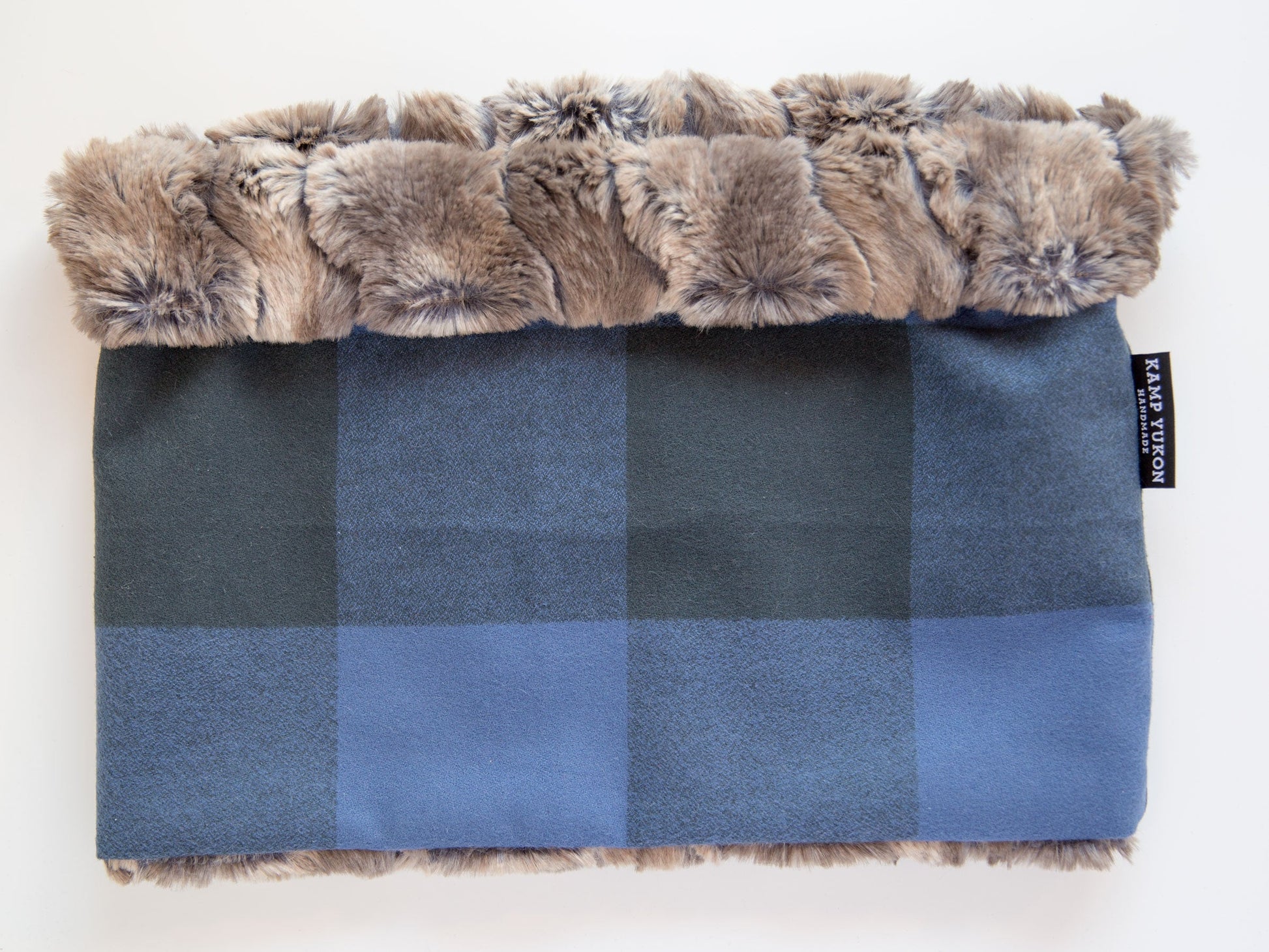 These neck warmers are the perfect accessory to keep you cozy this fall and winter (and maybe year-round in the Yukon). Reversible with a fun flannel on one side and a super soft minky fur on the other.