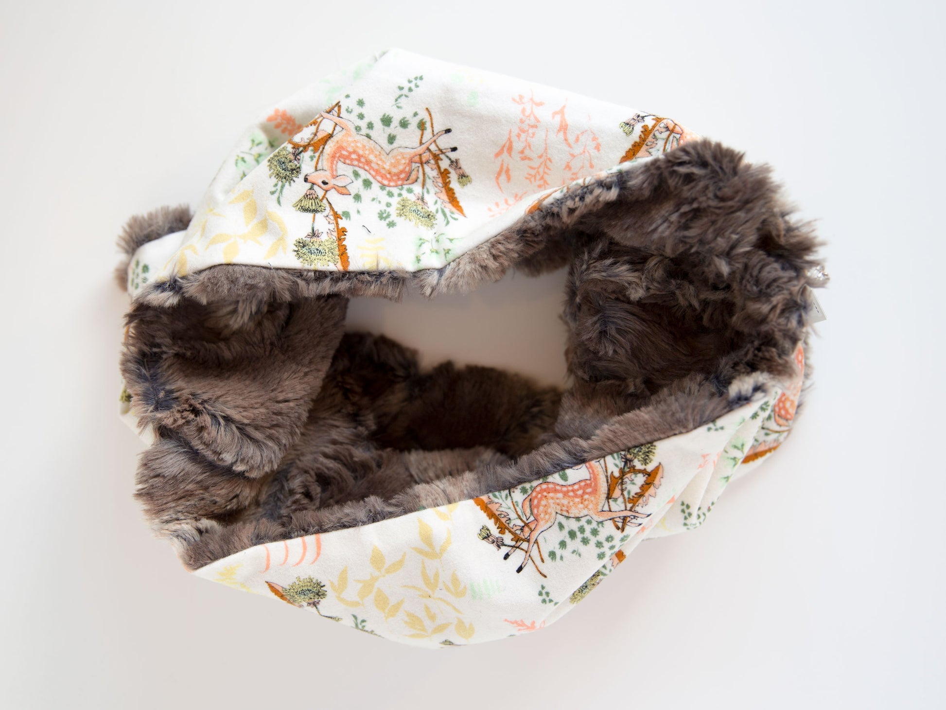 These neck warmers are the perfect accessory to keep you cozy this fall and winter (and maybe year-round in the Yukon). Reversible with a fun flannel on one side and a super soft minky fur on the other.