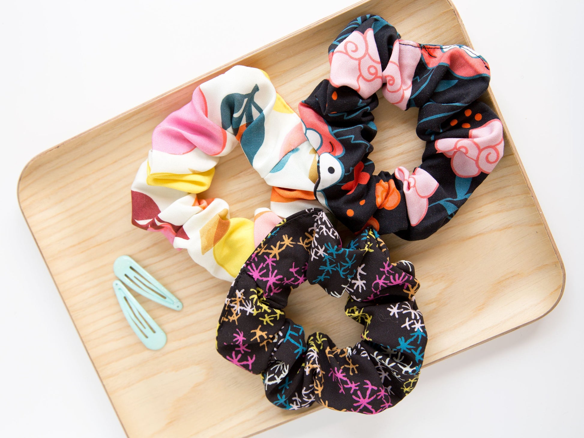 These big beautiful scrunchies are made with the prettiest silky rayon fabric that prevents damaging your hair. Great for messy buns, high ponytails and even look cute on your wrist.