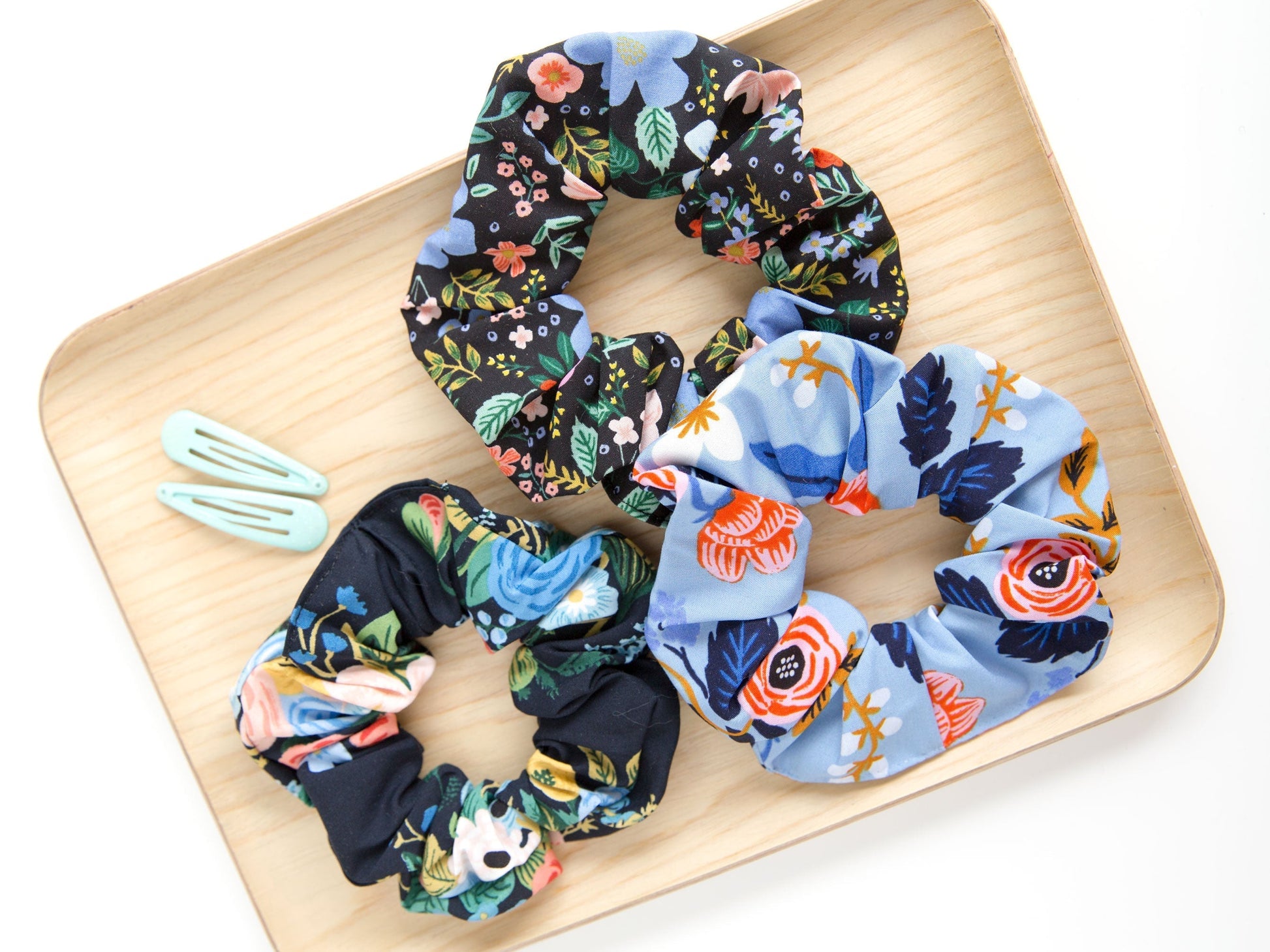 These big beautiful scrunchies are made with the prettiest silky rayon fabric that prevents damaging your hair. Great for messy buns, high ponytails and even look cute on your wrist.