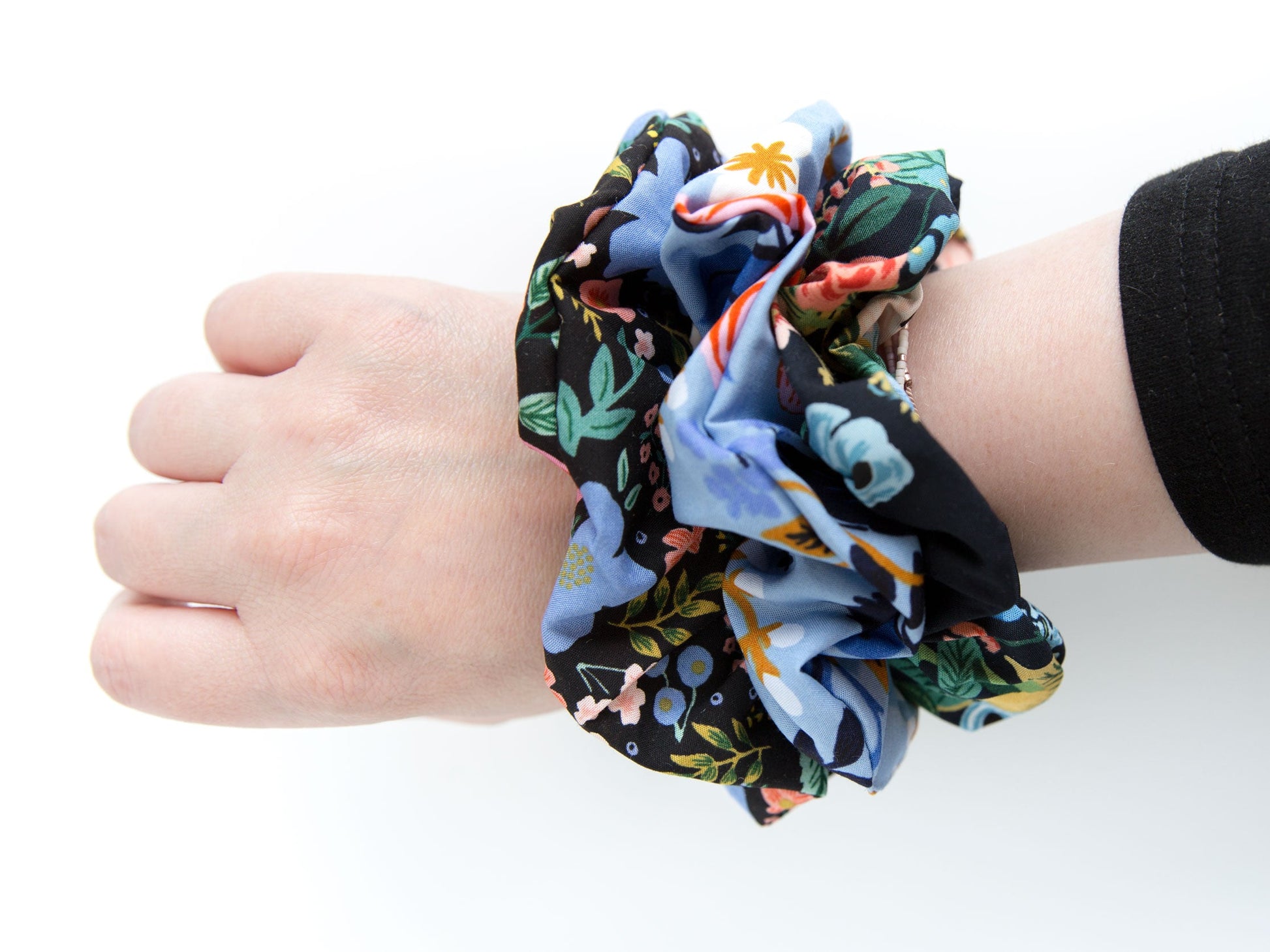 These big beautiful scrunchies are made with the prettiest silky rayon fabric that prevents damaging your hair. Great for messy buns, high ponytails and even look cute on your wrist.