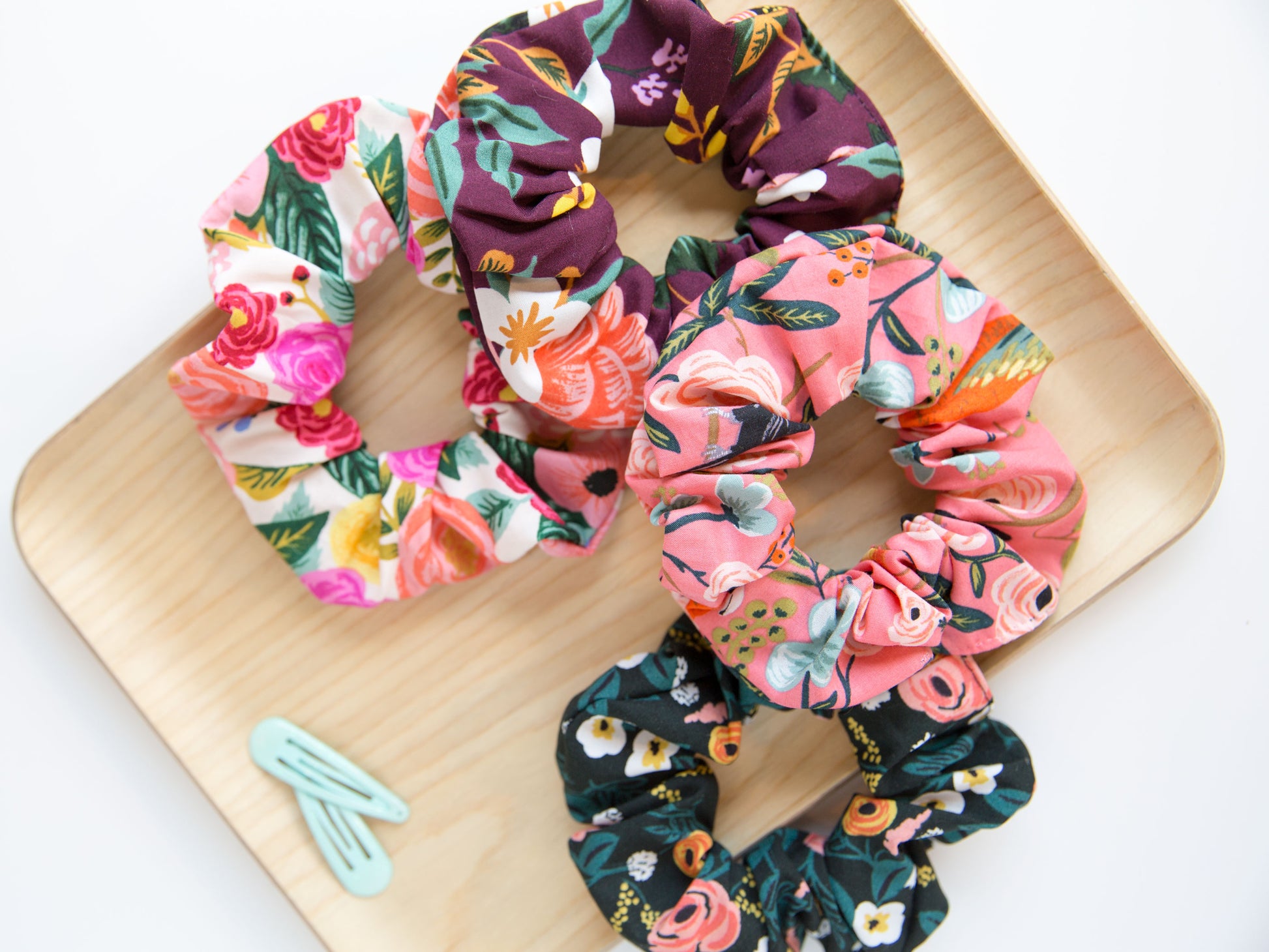These big beautiful scrunchies are made with the prettiest silky rayon fabric that prevents damaging your hair. Great for messy buns, high ponytails and even look cute on your wrist.