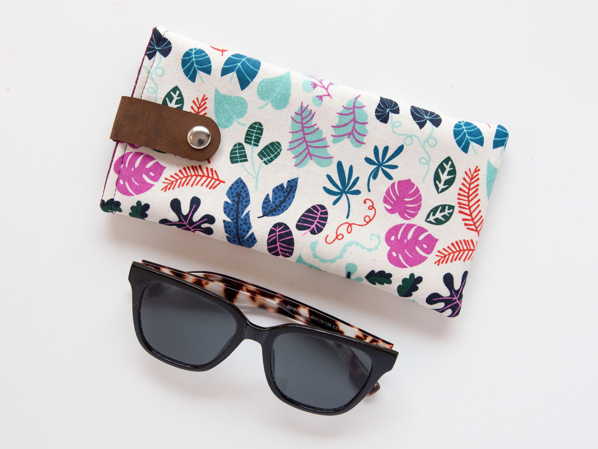 Keep your glasses and sunglasses safe and secure with this padded case. Easily accessible with a magnetic snap on a leather strap.