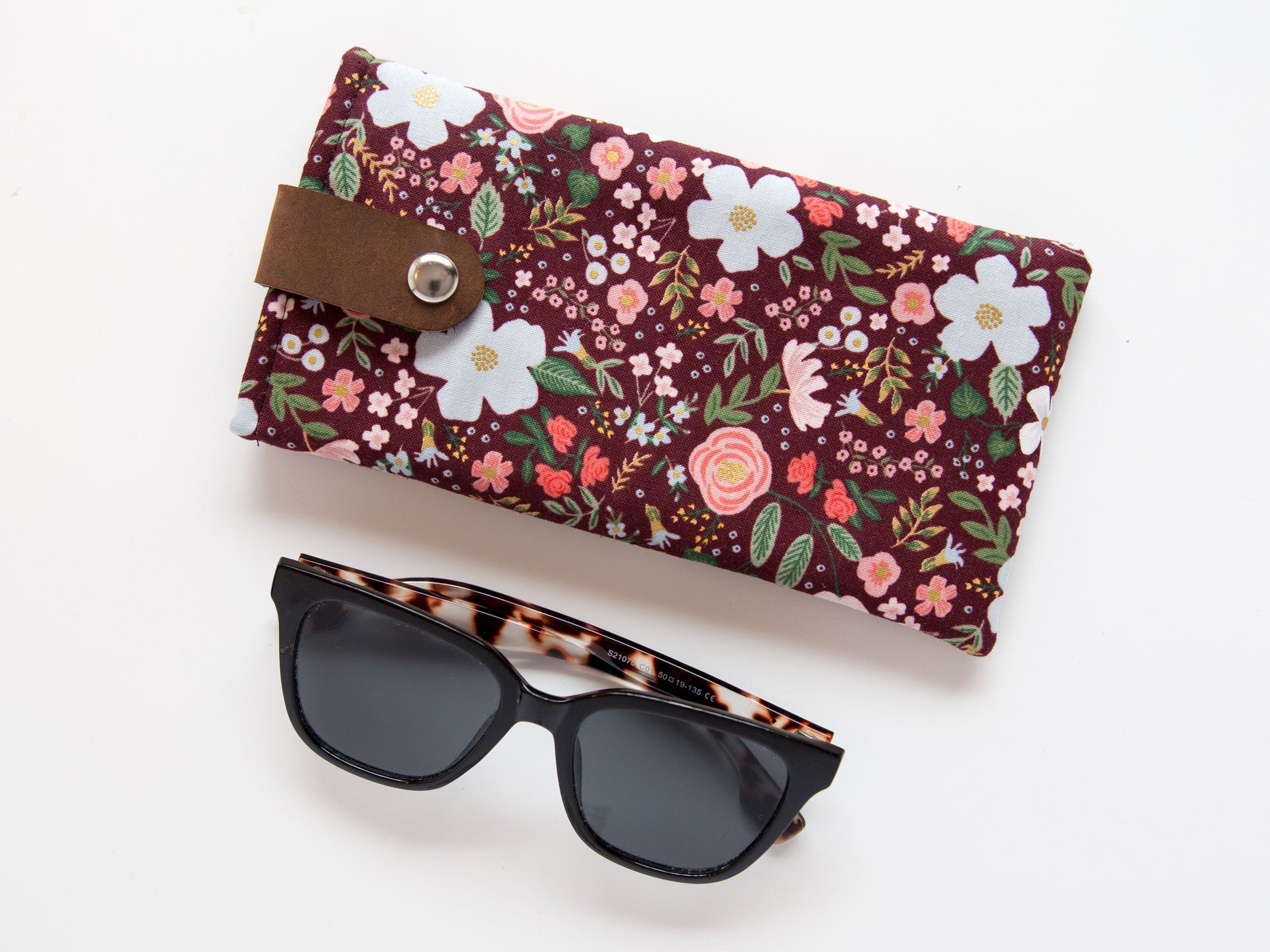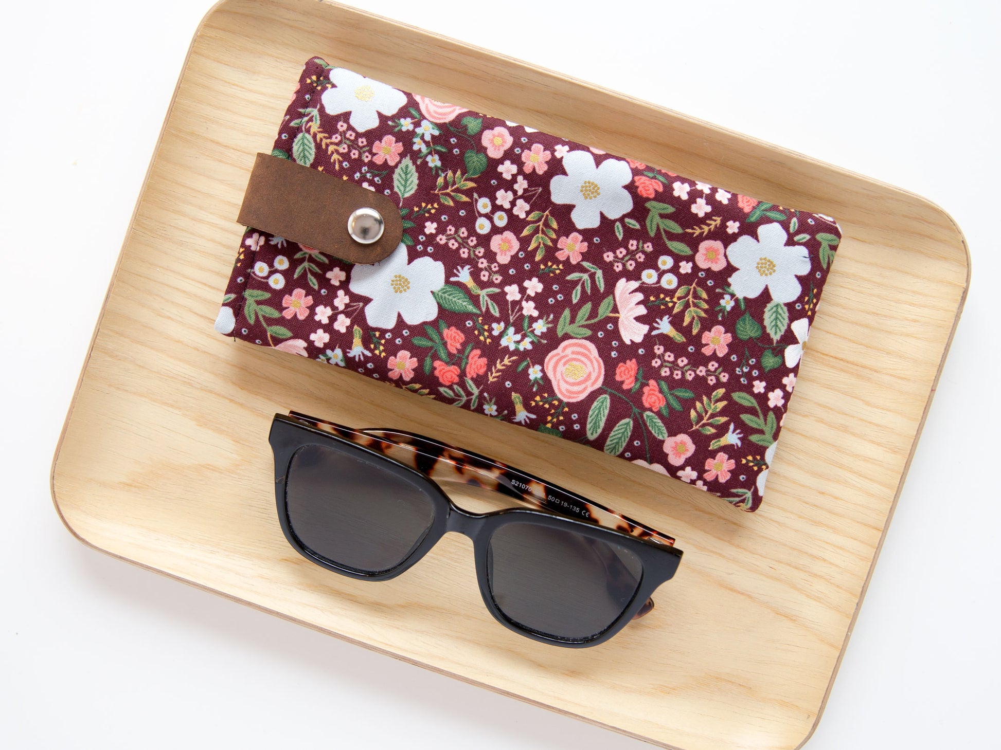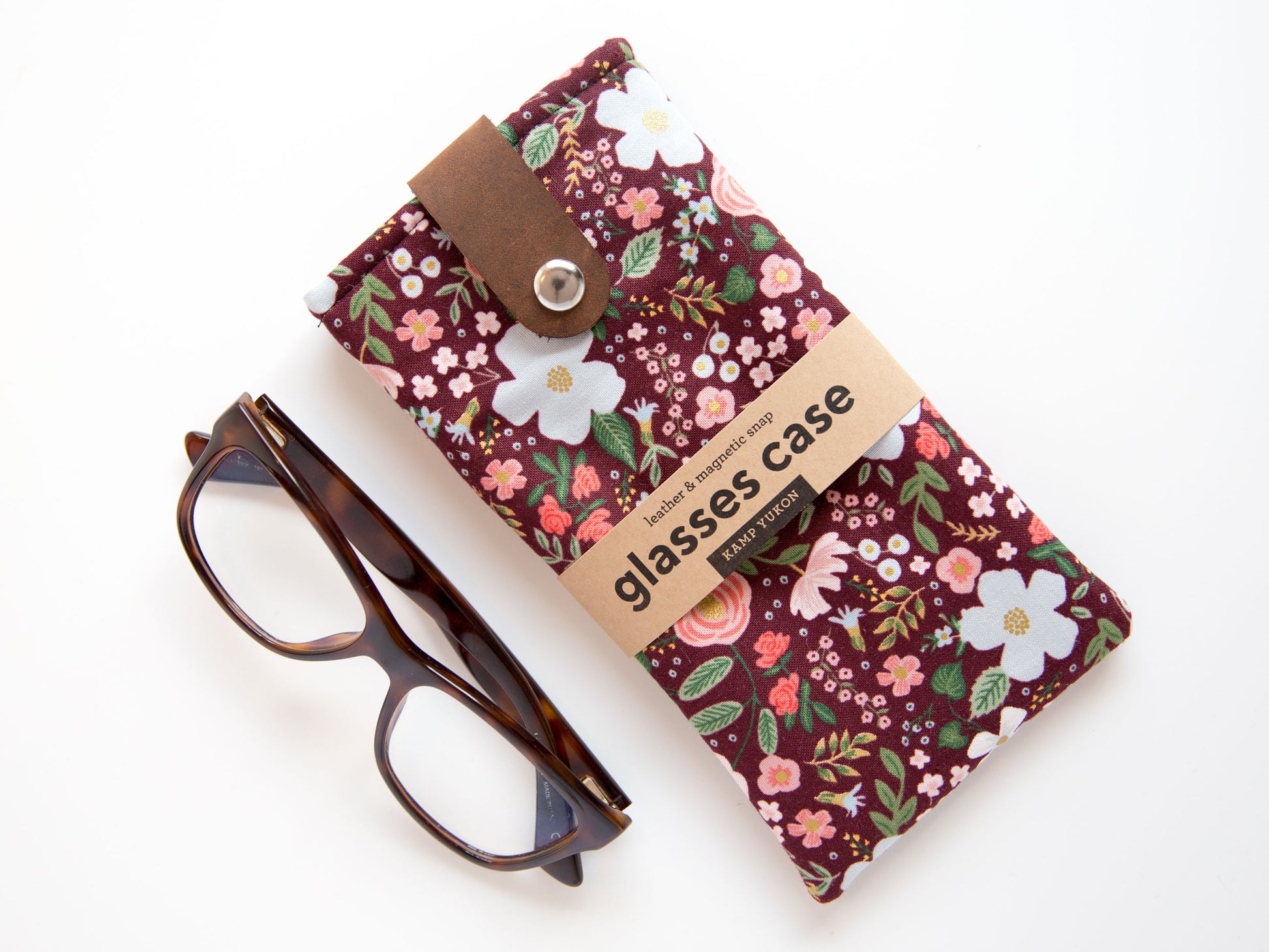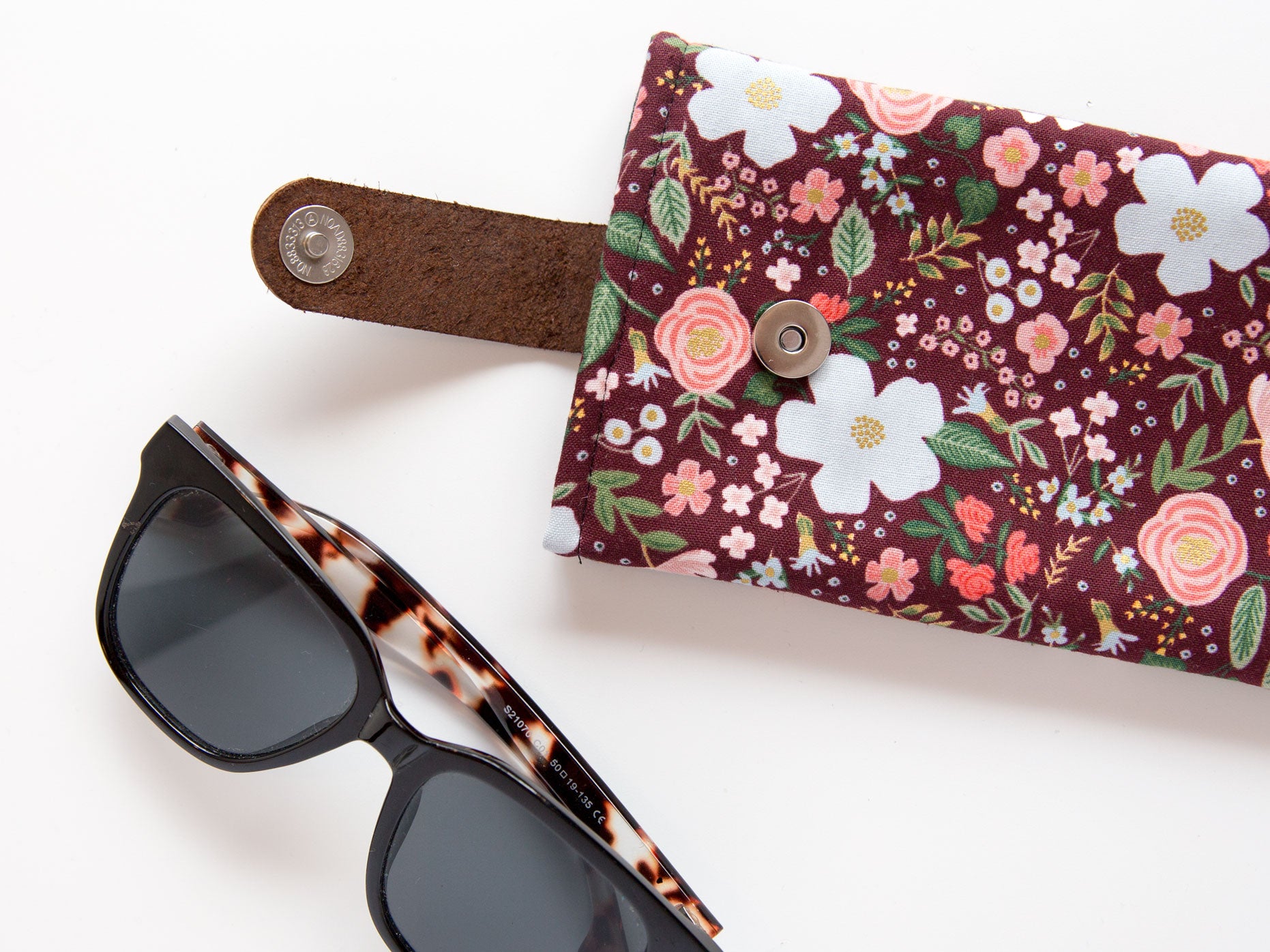 Keep your glasses and sunglasses safe and secure with this padded case. Easily accessible with a magnetic snap on a leather strap.