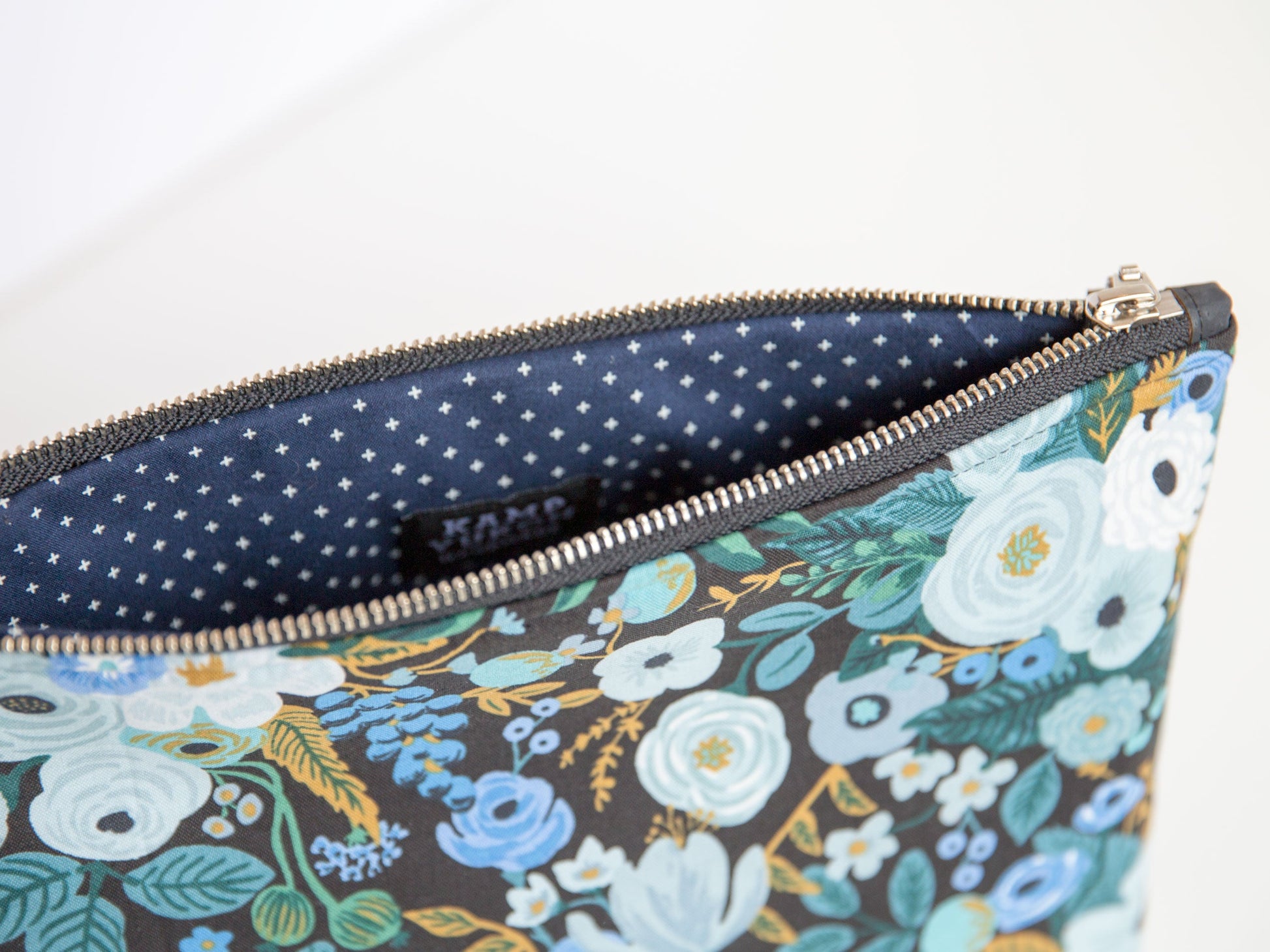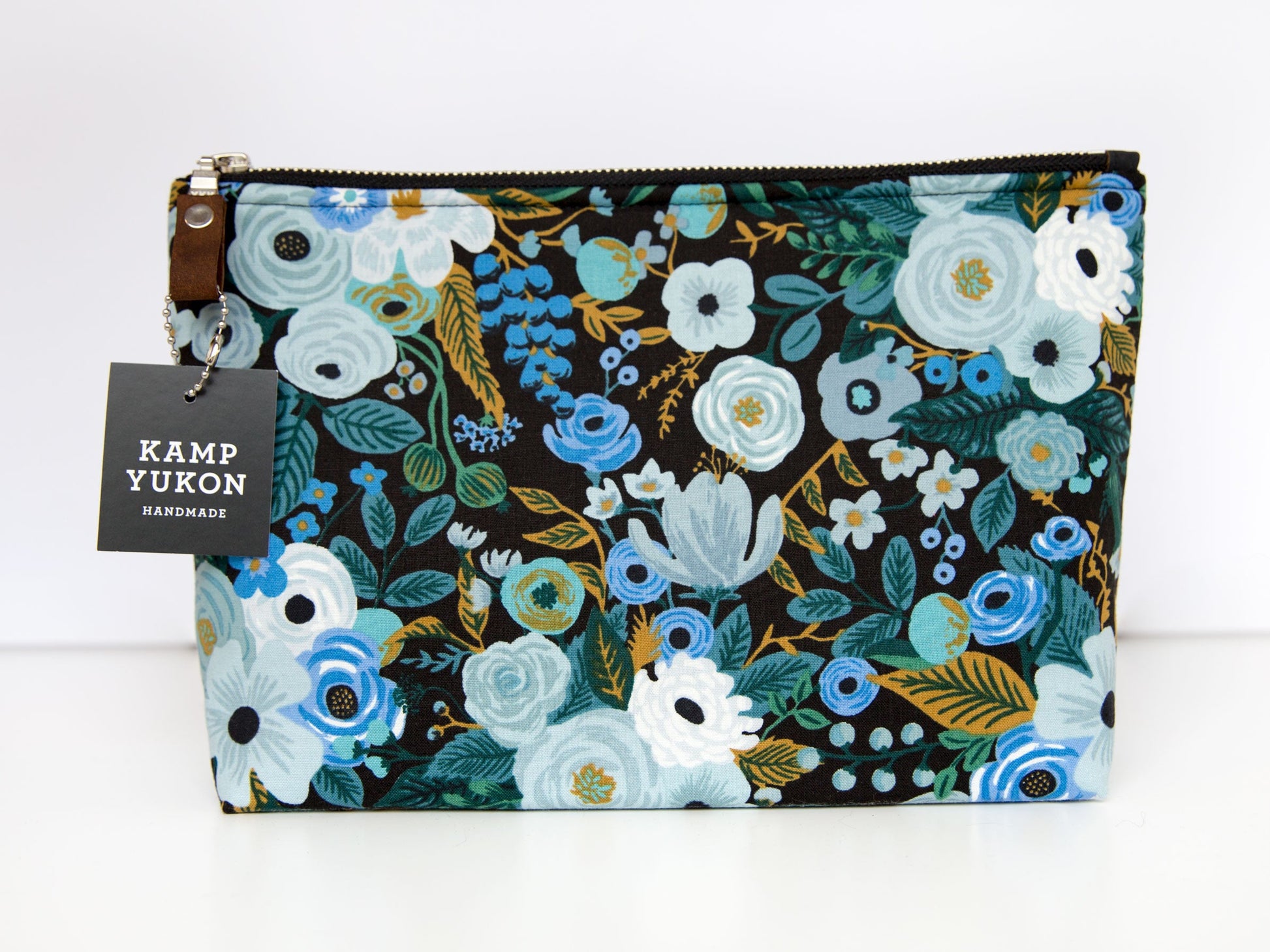 With just the right amount of batting and interfacing, this bag is soft and sturdy. Featuring a metal YKK zipper, leather zipper pull, and designer cotton fabric. Made from high-quality materials and built to last.