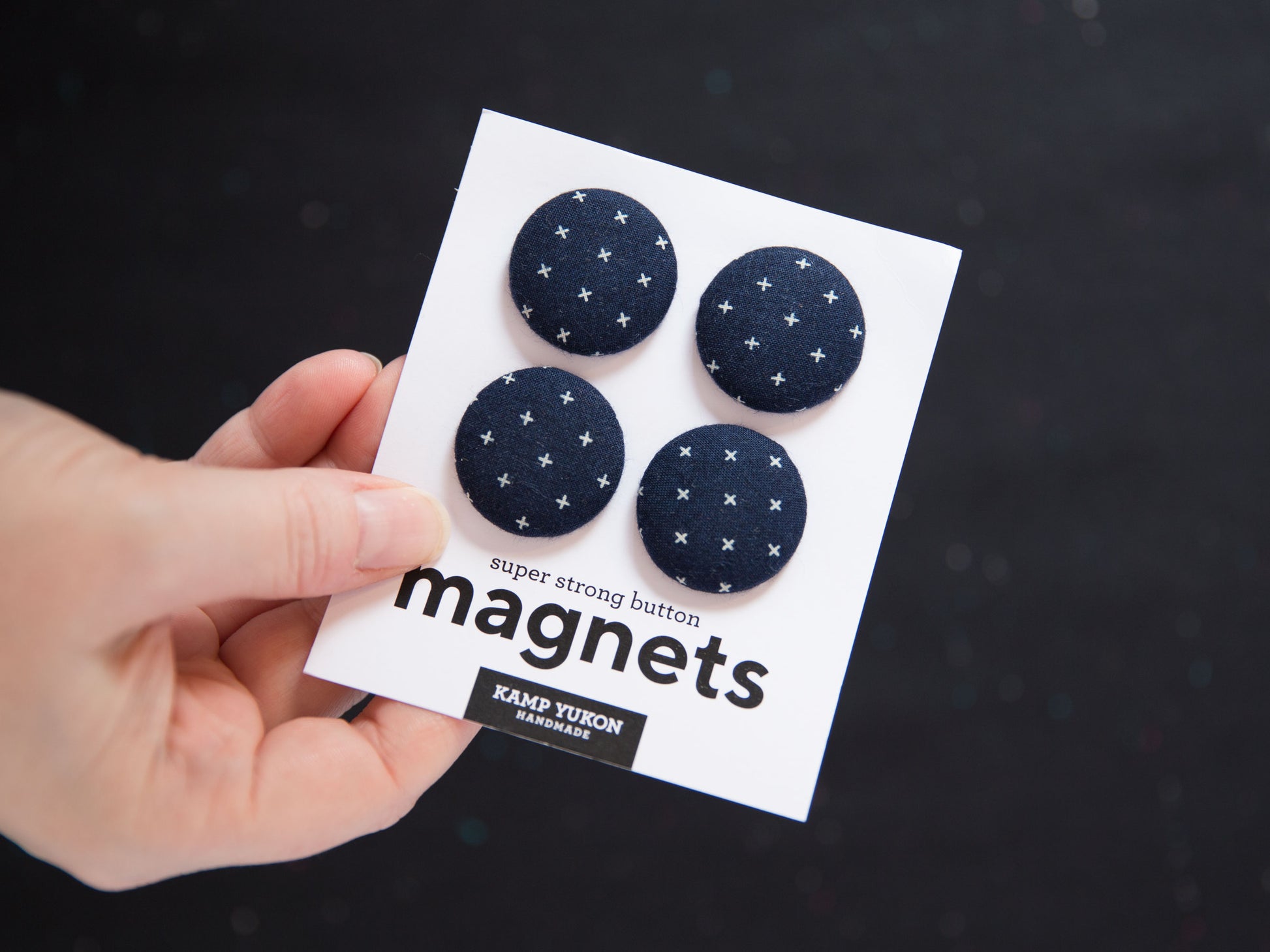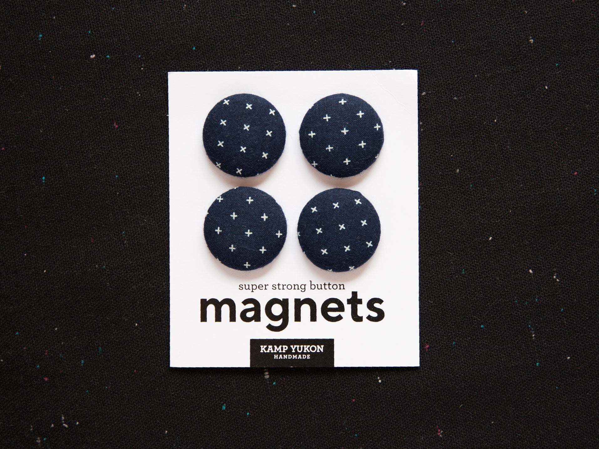 These magnet sets are an excellent way to add little pops of fun in your home or office. Each set includes four fabric-covered buttons securely attached to strong neodymium magnets and is packaged for easy gifting. They can be used on a variety of metal surfaces like fridges, lockers, dishwashers, filing cabinets, or toolboxes to name a few.