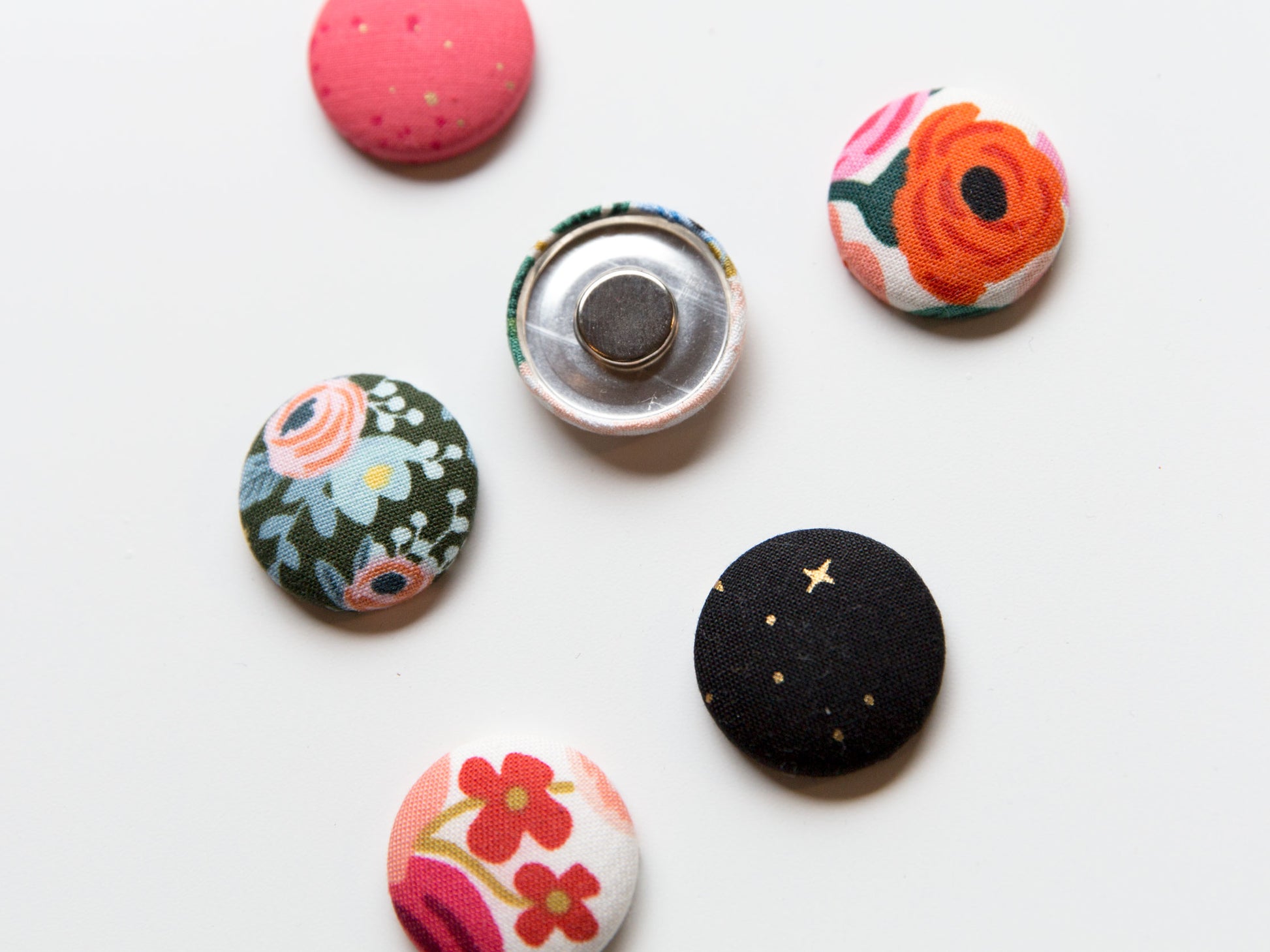 These magnet sets are an excellent way to add little pops of fun in your home or office. Each set includes four fabric-covered buttons securely attached to strong neodymium magnets and is packaged for easy gifting. They can be used on a variety of metal surfaces like fridges, lockers, dishwashers, filing cabinets, or toolboxes to name a few.