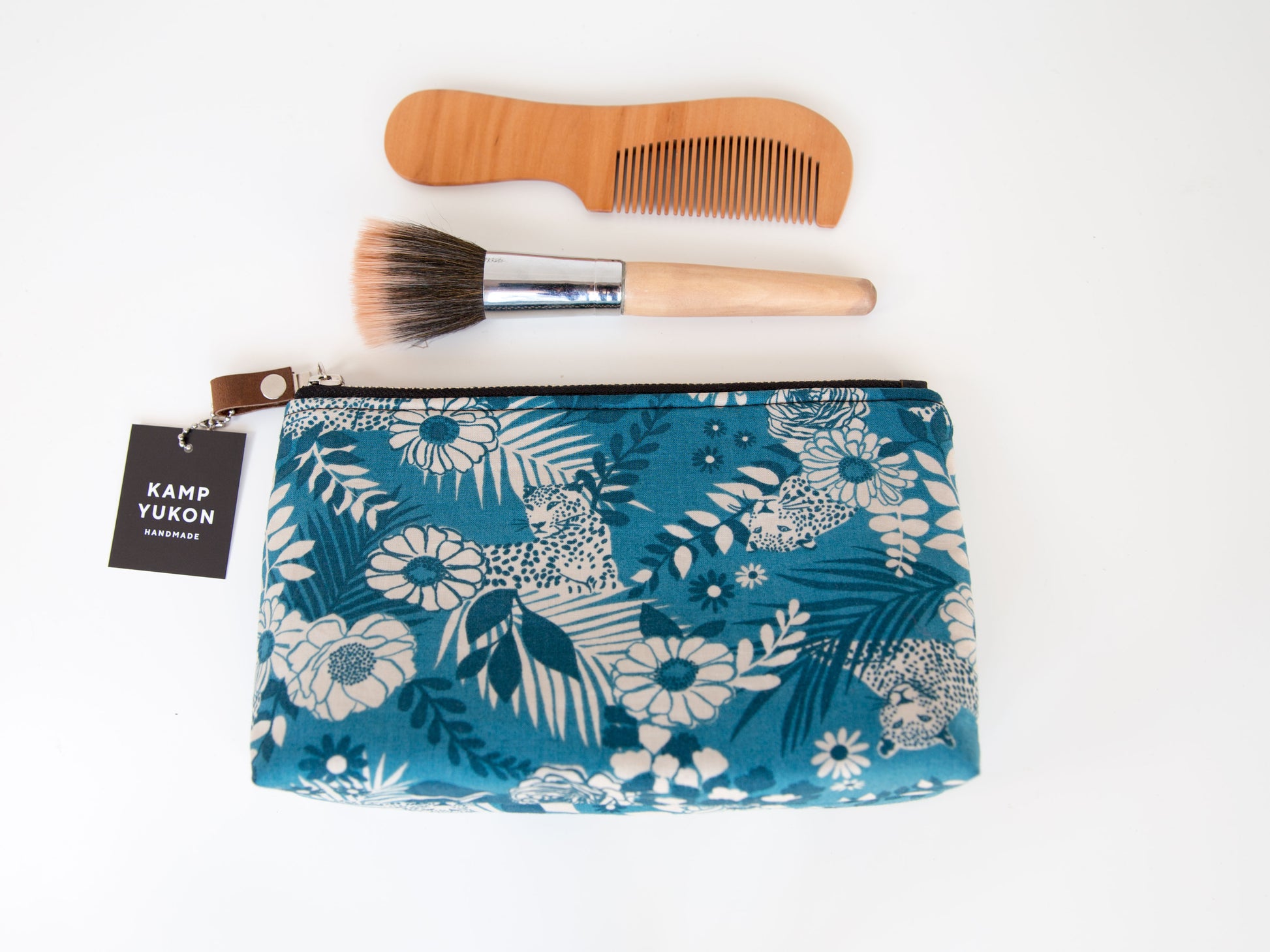 With just the right amount of batting and interfacing, this bag is soft and sturdy. Featuring a metal YKK zipper, leather zipper pull, and designer cotton fabric. Made from high-quality materials and built to last.
