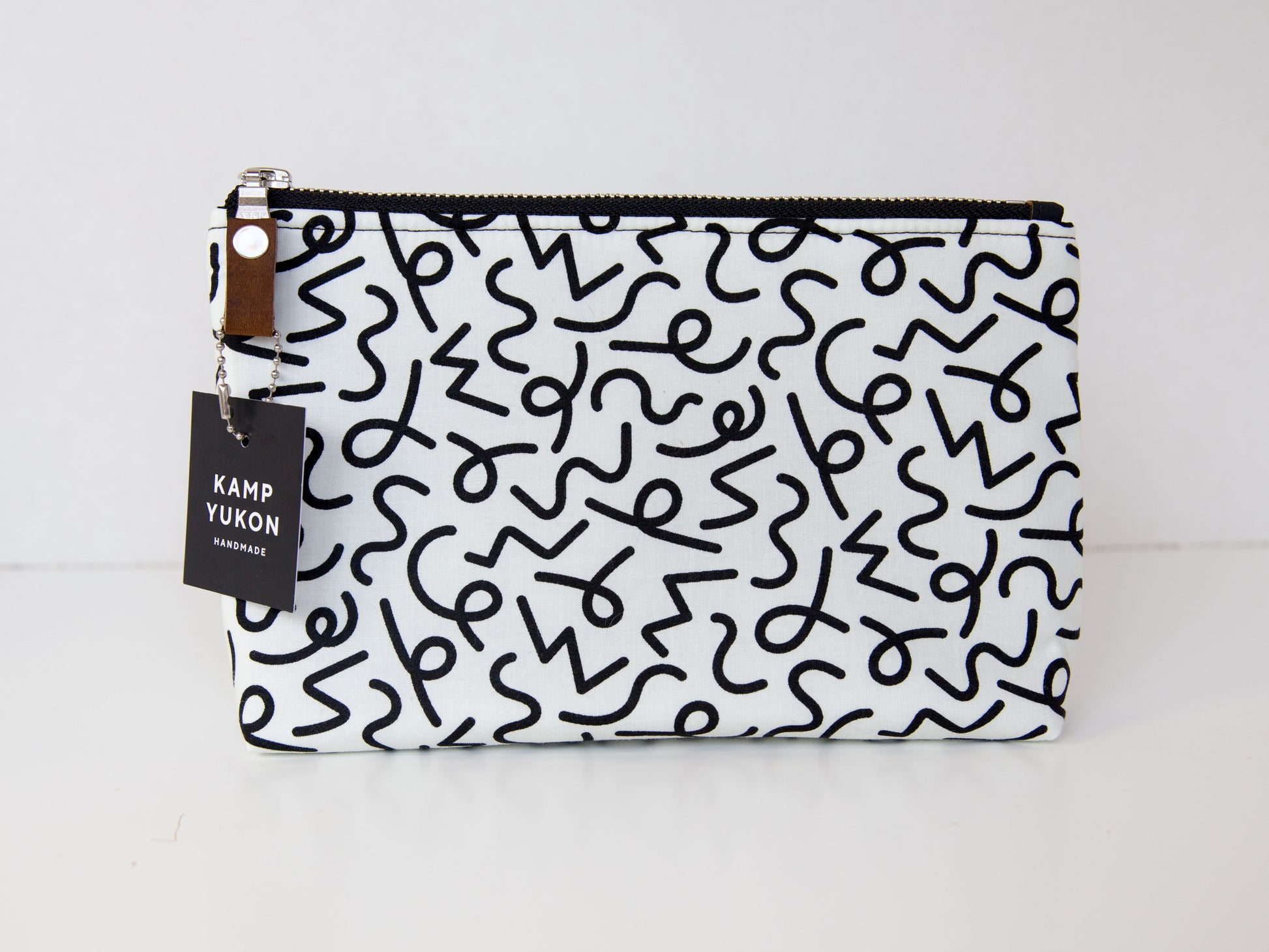 With just the right amount of batting and interfacing, this bag is soft and sturdy. Featuring a metal YKK zipper, leather zipper pull, and designer cotton fabric. Made from high-quality materials and built to last.