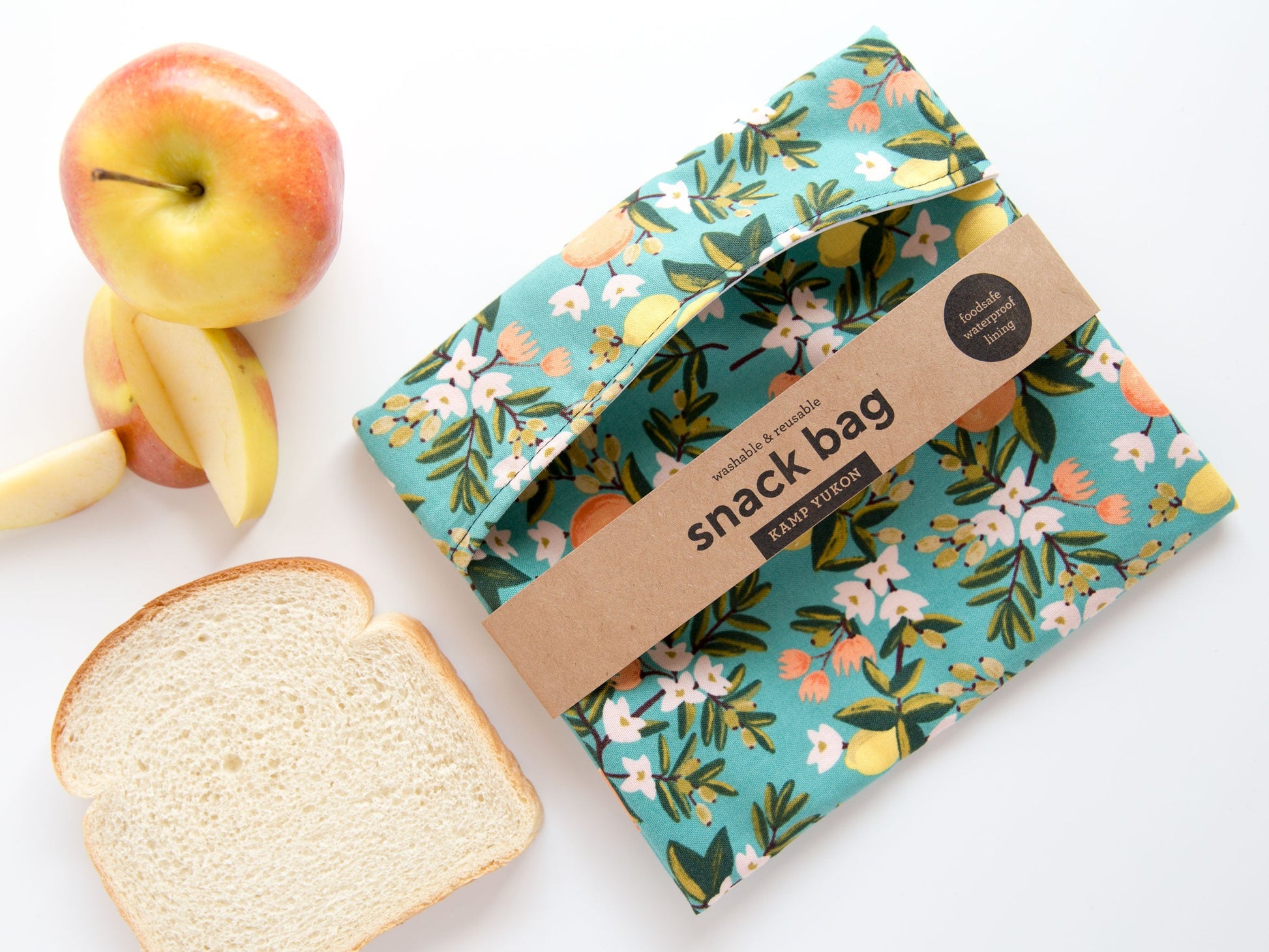 Eco-friendly and reusable fold-over snack and sandwich bags are perfect for little hands. You can pack them with delicious snacks for school, work, road trips, picnics, camping trips, and even dog treats. The bags are lined with a waterproof and food-safe ProCare® fabric, which makes them easy to clean and maintain.