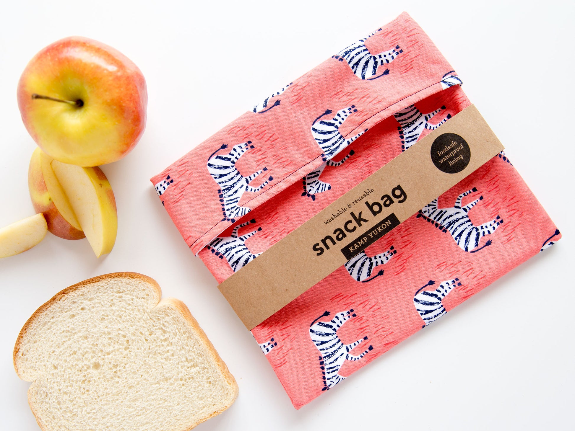 Eco-friendly and reusable fold-over snack and sandwich bags are perfect for little hands. You can pack them with delicious snacks for school, work, road trips, picnics, camping trips, and even dog treats. The bags are lined with a waterproof and food-safe ProCare® fabric, which makes them easy to clean and maintain.