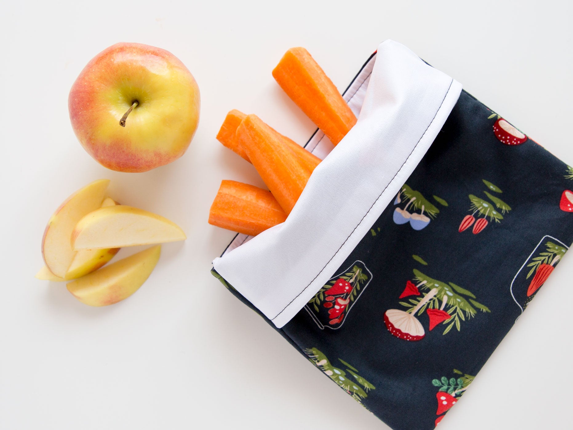 Eco-friendly and reusable fold-over snack and sandwich bags are perfect for little hands. You can pack them with delicious snacks for school, work, road trips, picnics, camping trips, and even dog treats. The bags are lined with a waterproof and food-safe ProCare® fabric, which makes them easy to clean and maintain.
